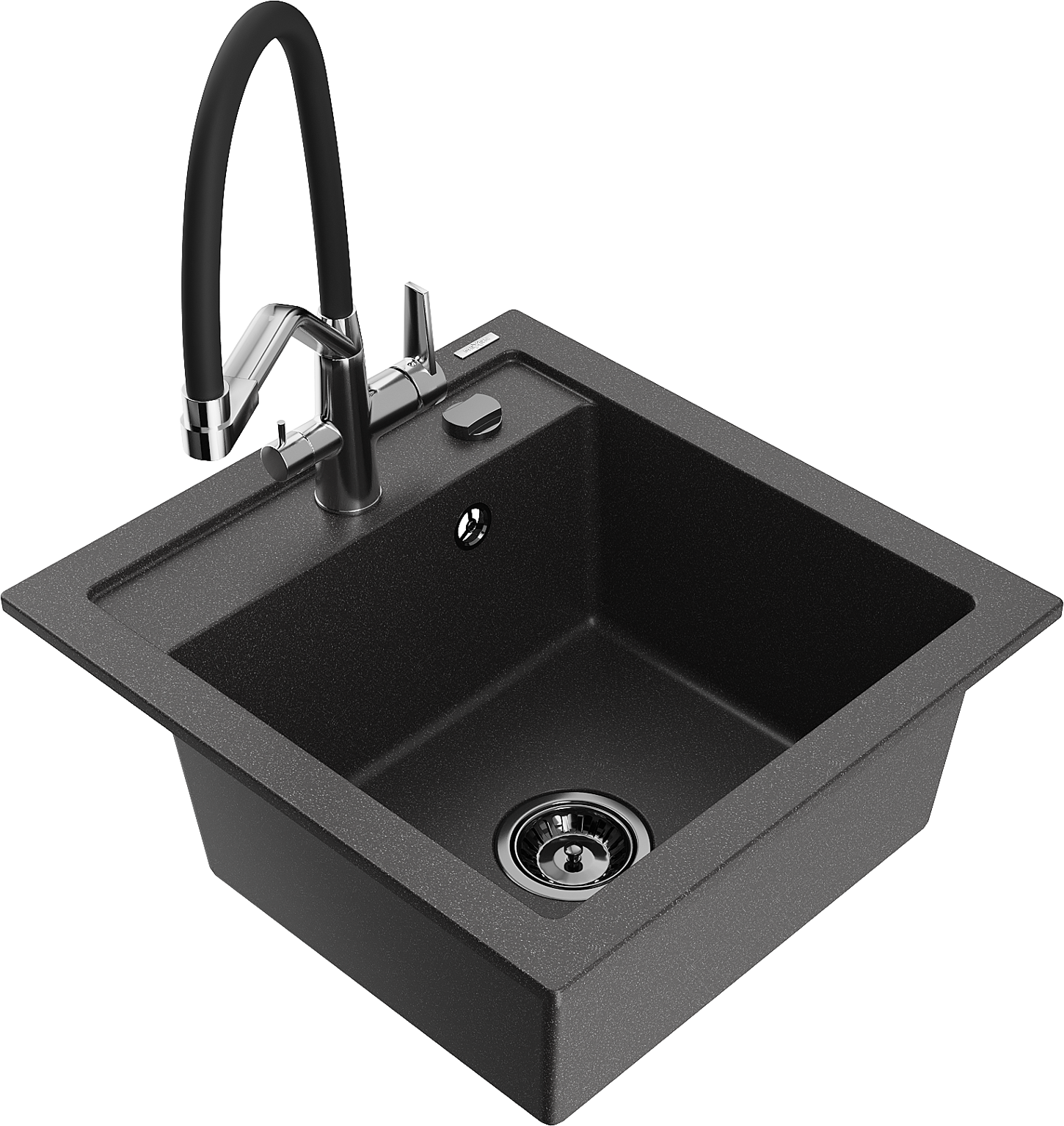 Mexen Vito žulový kuchynský drez 1-komorový s kuchynskou batériou Duo, čierny škvrnitý - 6503-76-671701-07-B