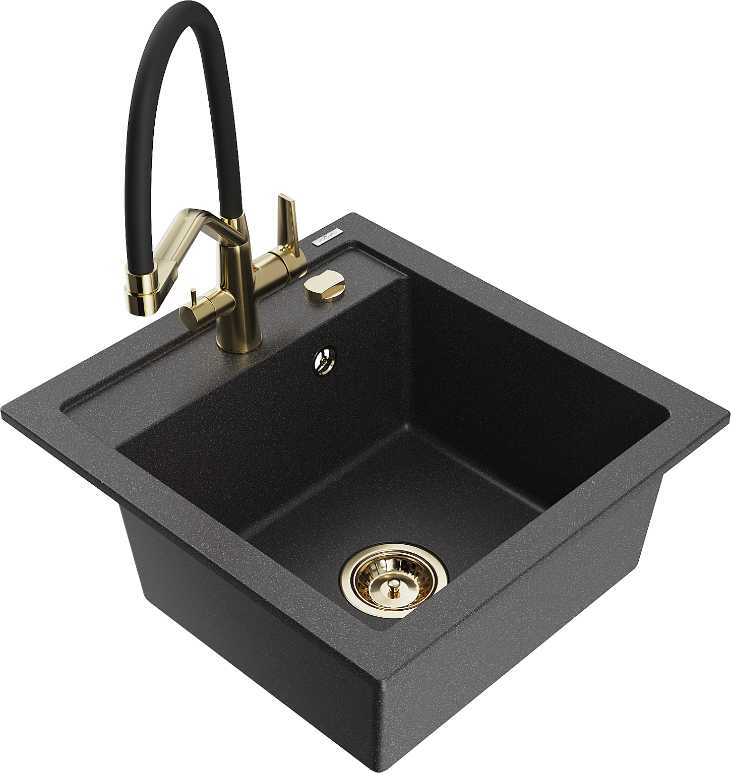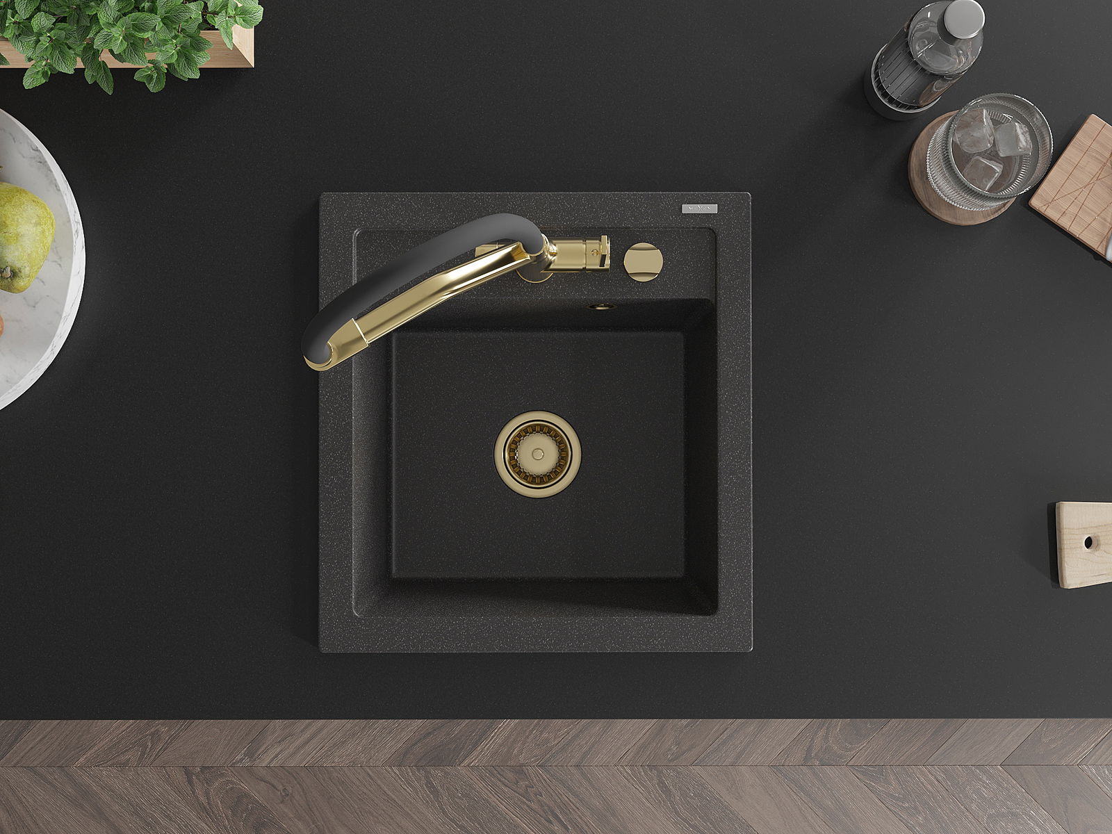 Mexen Vito granitový drez 1-komorový s kuchynskou batériou Duo, čierny škvrnitý - 6503-76-671701-57-G