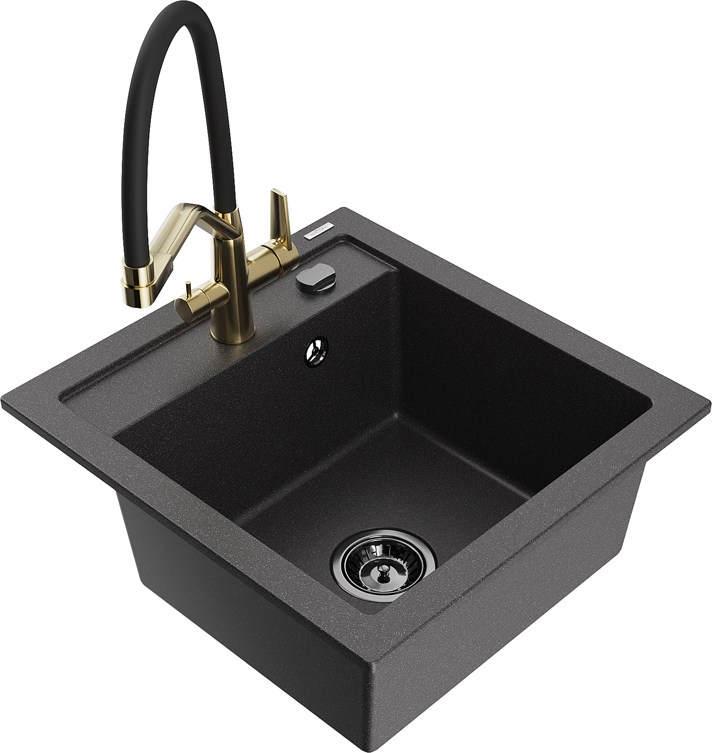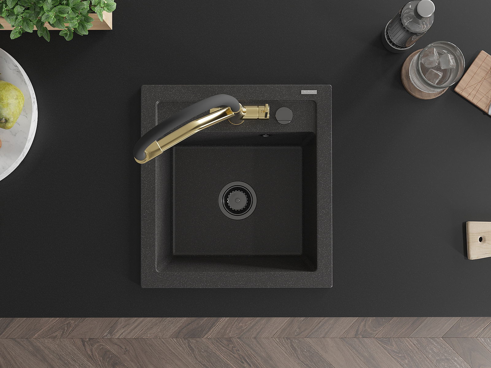 Mexen Vito kuchynský drez z granitu 1-komorový s kuchynskou batériou Duo, čierny s bodkami - 6503-76-671701-57-B