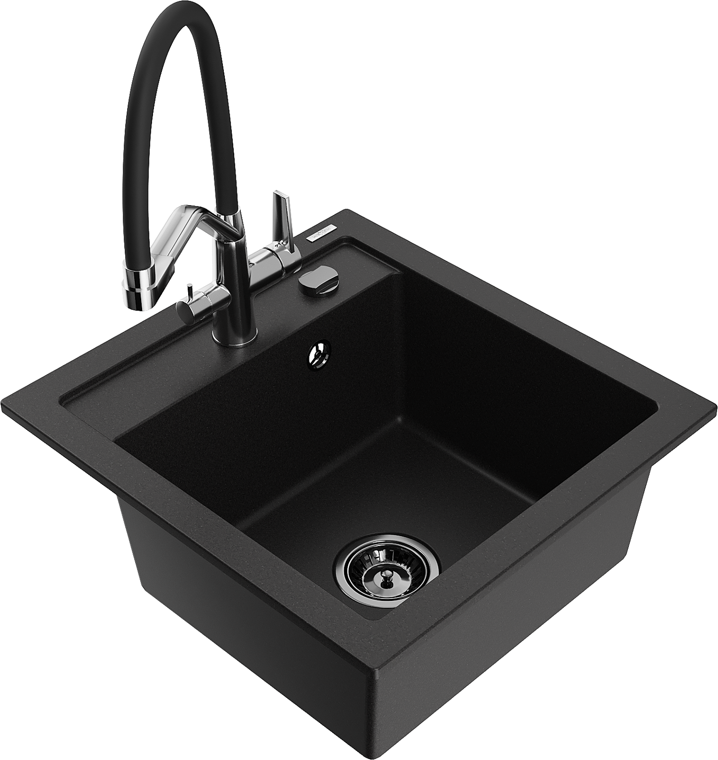 Mexen Vito granitový drez s jednou komorou a kuchynskou batériou Duo, čierny - 6503-77-671701-07-B