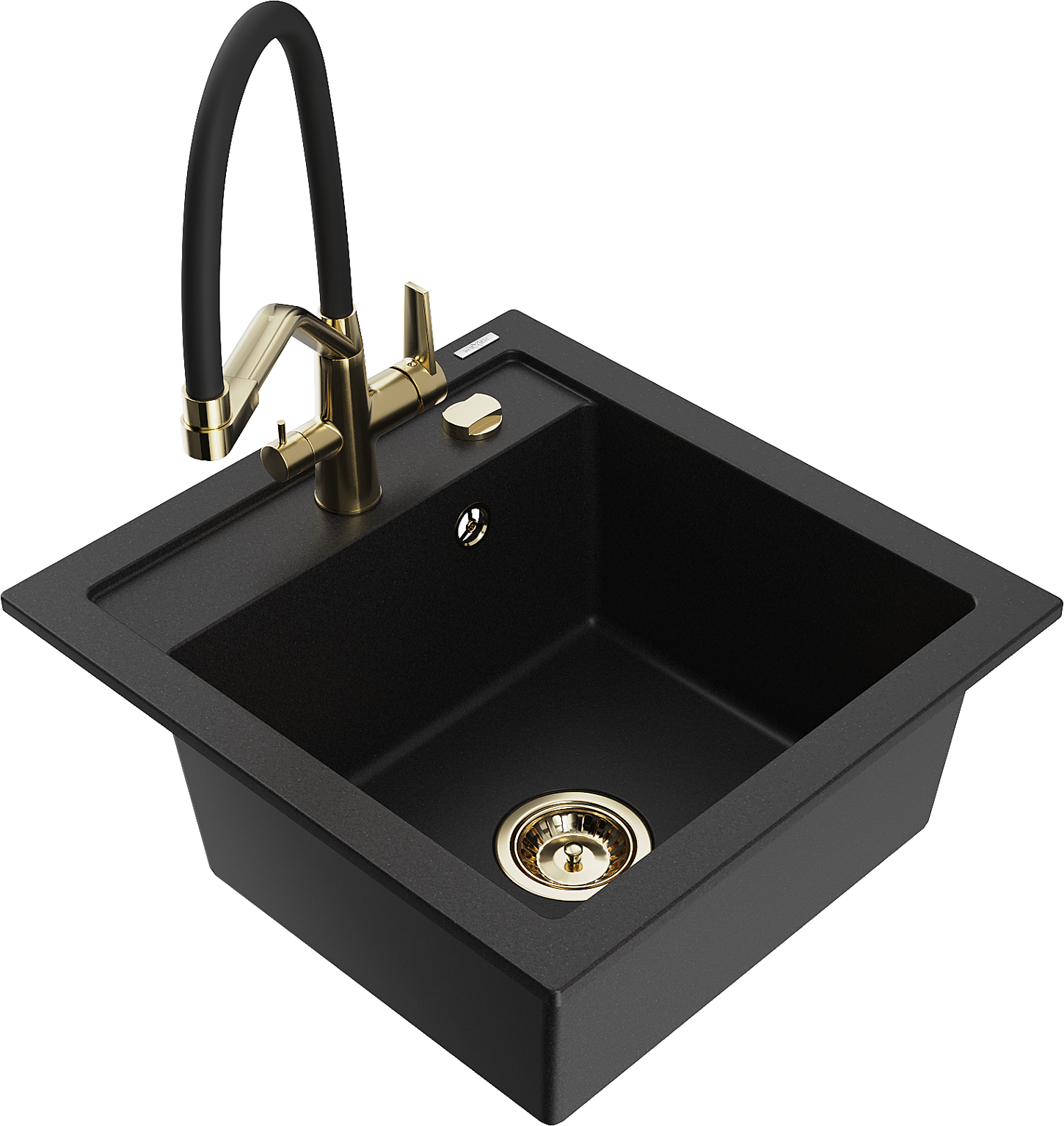 Mexen Vito granitový kuchynský drez 1-komorový s kuchynskou batériou Duo, čierny - 6503-77-671701-57-G