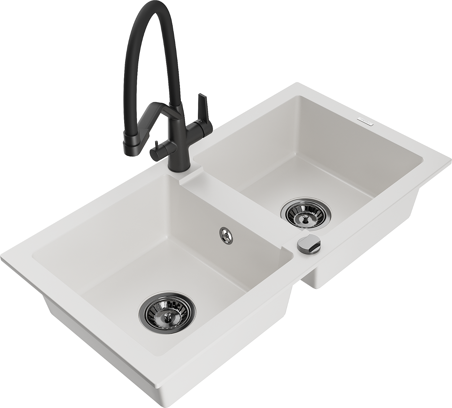Mexen Mario žulový drez s 2 komorami a kuchynskou batériou Duo, biela - 6504-20-671701-70-B