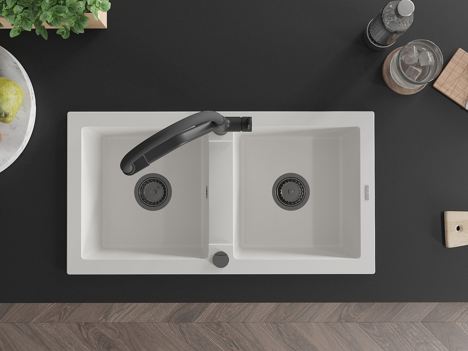 Povrch umývadla je odolný voči škvrnám a sfarbeniu, vďaka čomu sa ľahko čistí a zachováva si svoju farbu po dlhú dobu. Estetický a prakticky dopĺňajúci každú kuchyňu.