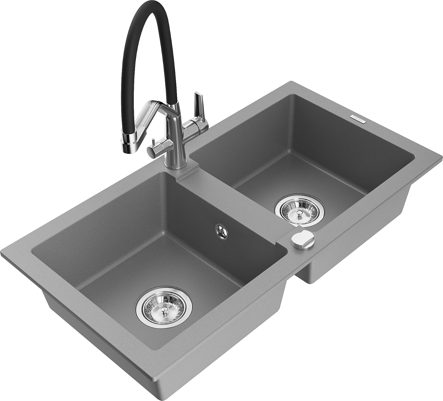 Mexen Mario granitový drez s 2 komorami a kuchynskou batériou Duo, sivý - 6504-71-671701-07