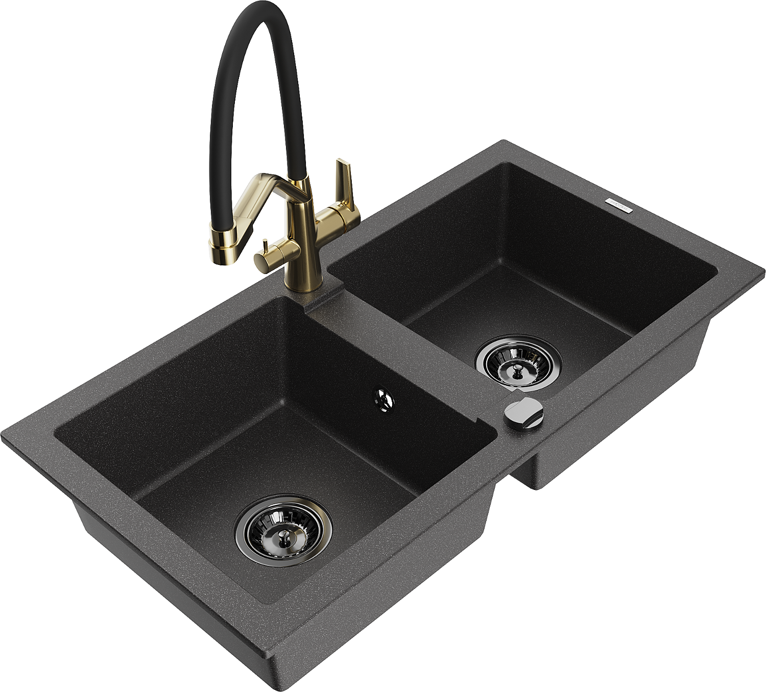 Mexen Mario drez z granitu dvojkomorový s kuchynskou batériou Duo, čierny bodkovaný - 6504-76-671701-57-B