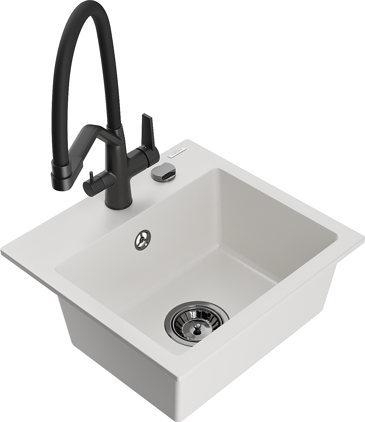 Mexen Milo 1-komorový granitový drez s kuchynskou batériou Duo, biely - 6505-20-671701-70-B