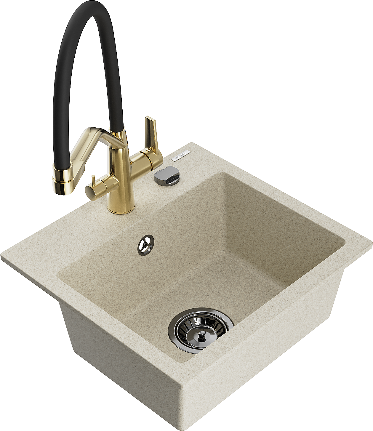 Mexen Milo granitový kuchynský drez 1-komorový s kuchynskou batériou Duo, béžový - 6505-69-671701-57-B