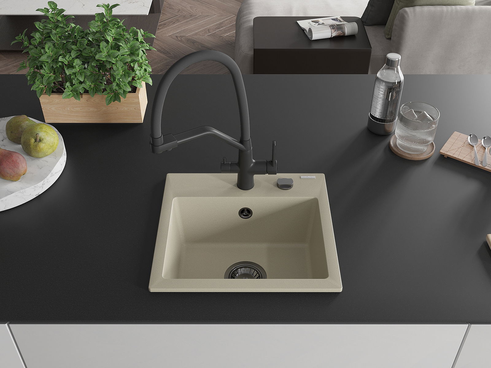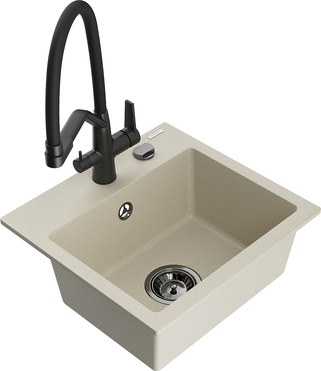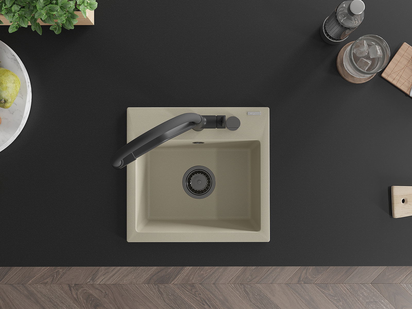 Mexen Milo granitový drez s 1 komorou a kuchynskou batériou Duo, béžový - 6505-69-671701-70-B