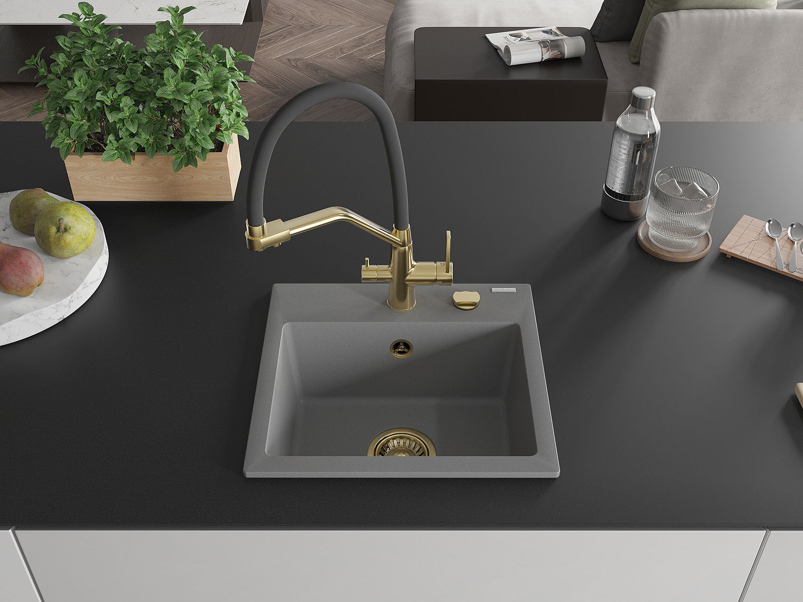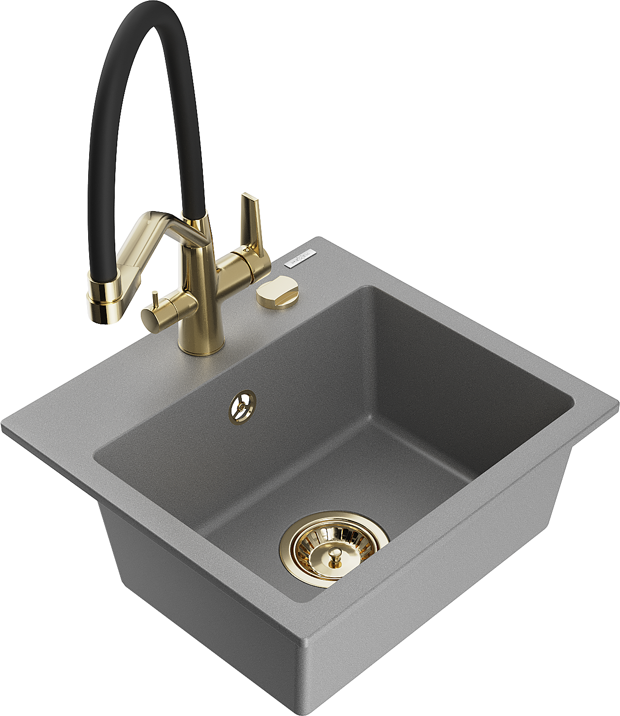 Mexen Milo granitový drez 1-komorový s kuchynskou batériou Duo, sivý - 6505-71-671701-57-G