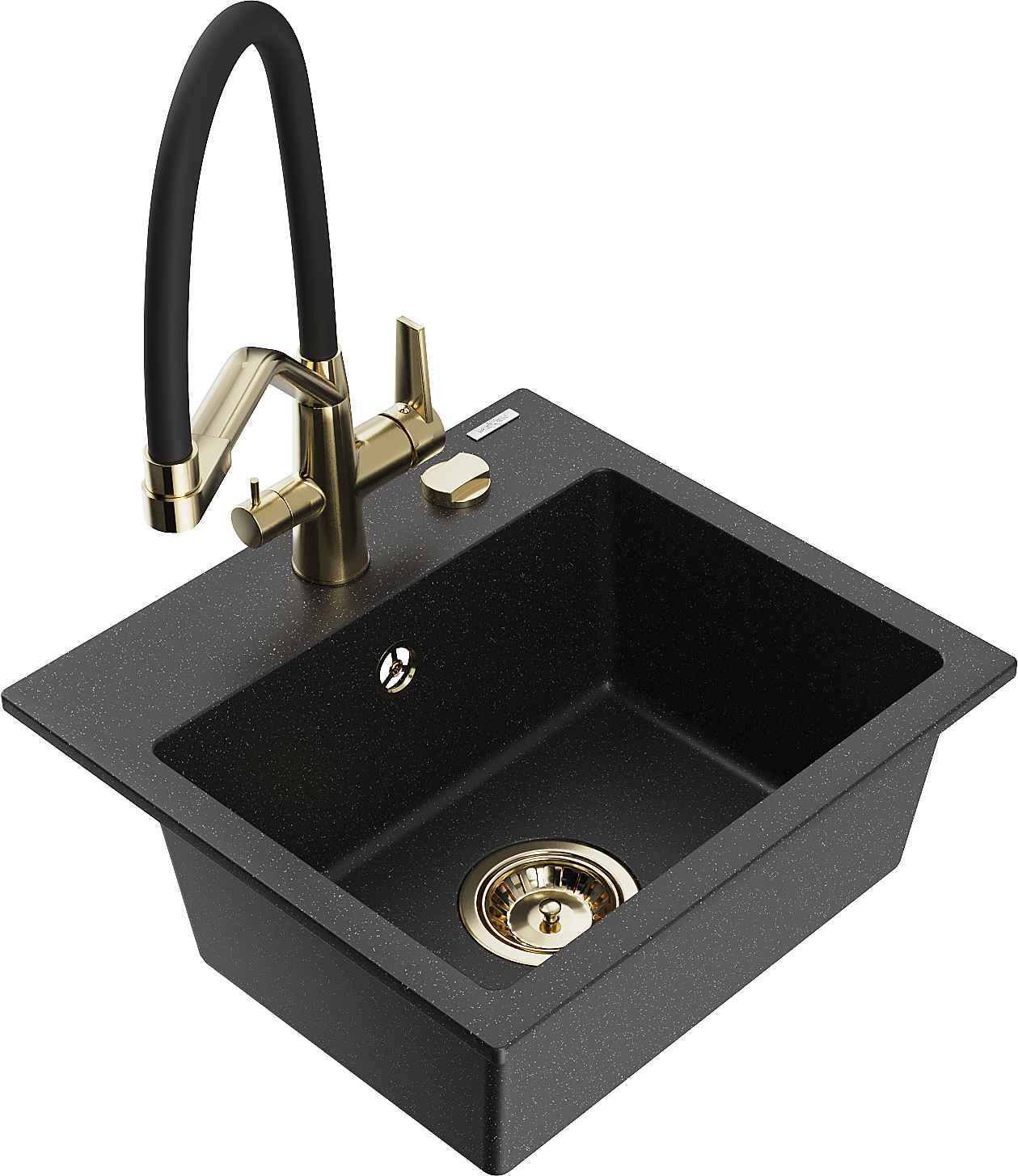 Mexen Milo granitový drez s 1-miskou a kuchynským kohútikom Duo, čierno/strieborný metalik - 6505-73-671701-57-G