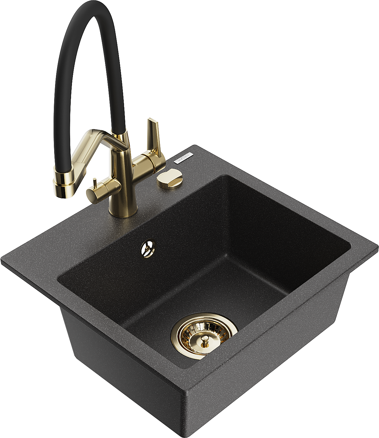 Mexen Milo žulový drez 1-komorový s kuchynskou batériou Duo, čierny nakvapkaný - 6505-76-671701-57-G