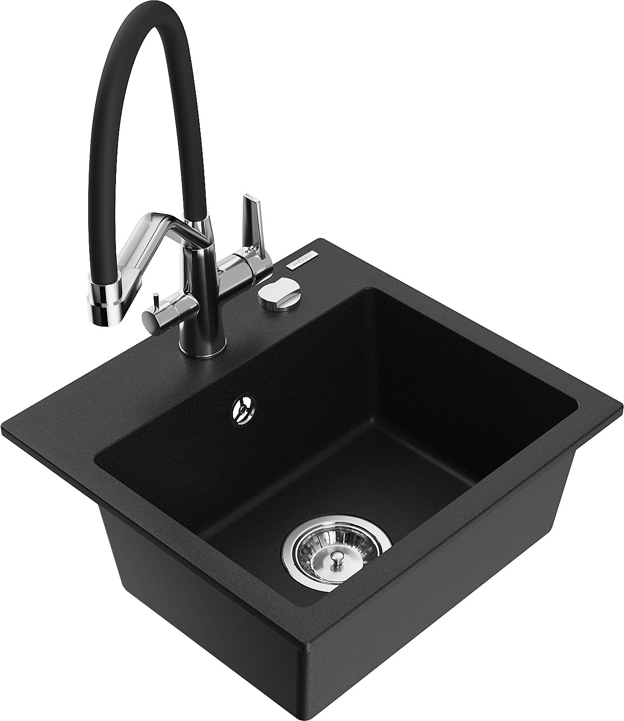 Mexen Milo kuchynský drez z granitu 1-komorový s kuchynskou batériou Duo, čierny - 6505-77-671701-07