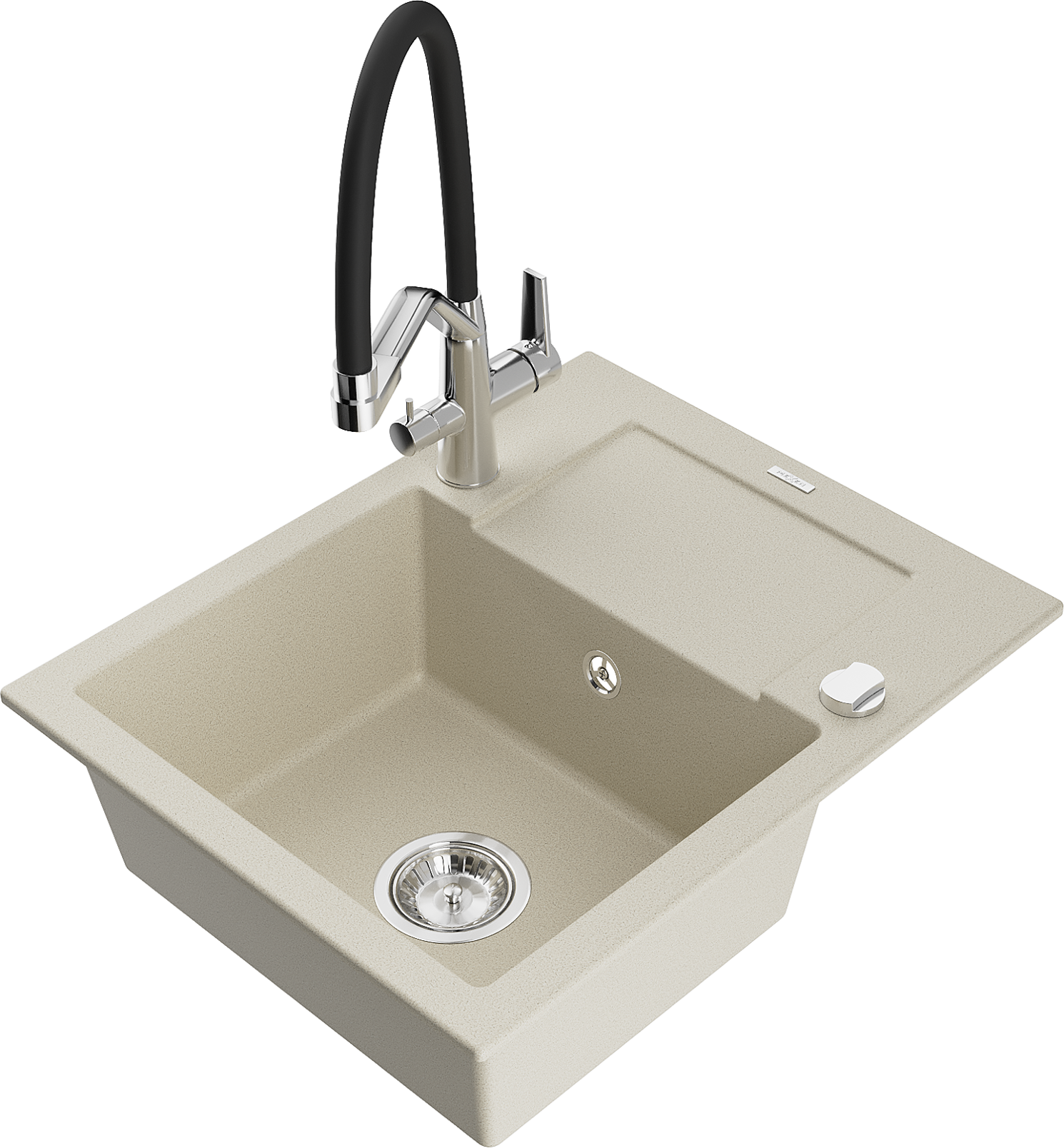 Mexen Enzo granitový drez s 1 komorou, odkvapkávačom a kuchynskou batériou Duo, béžový - 6506-69-671701-07