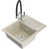 Povrch kuchynského drezu je odolný voči škvrnám a zafarbeniu, vďaka čomu sa ľahko udržiava a zachováva svoju farbu počas dlhého obdobia používania. Estetický a praktický doplnok pre každú kuchyňu.