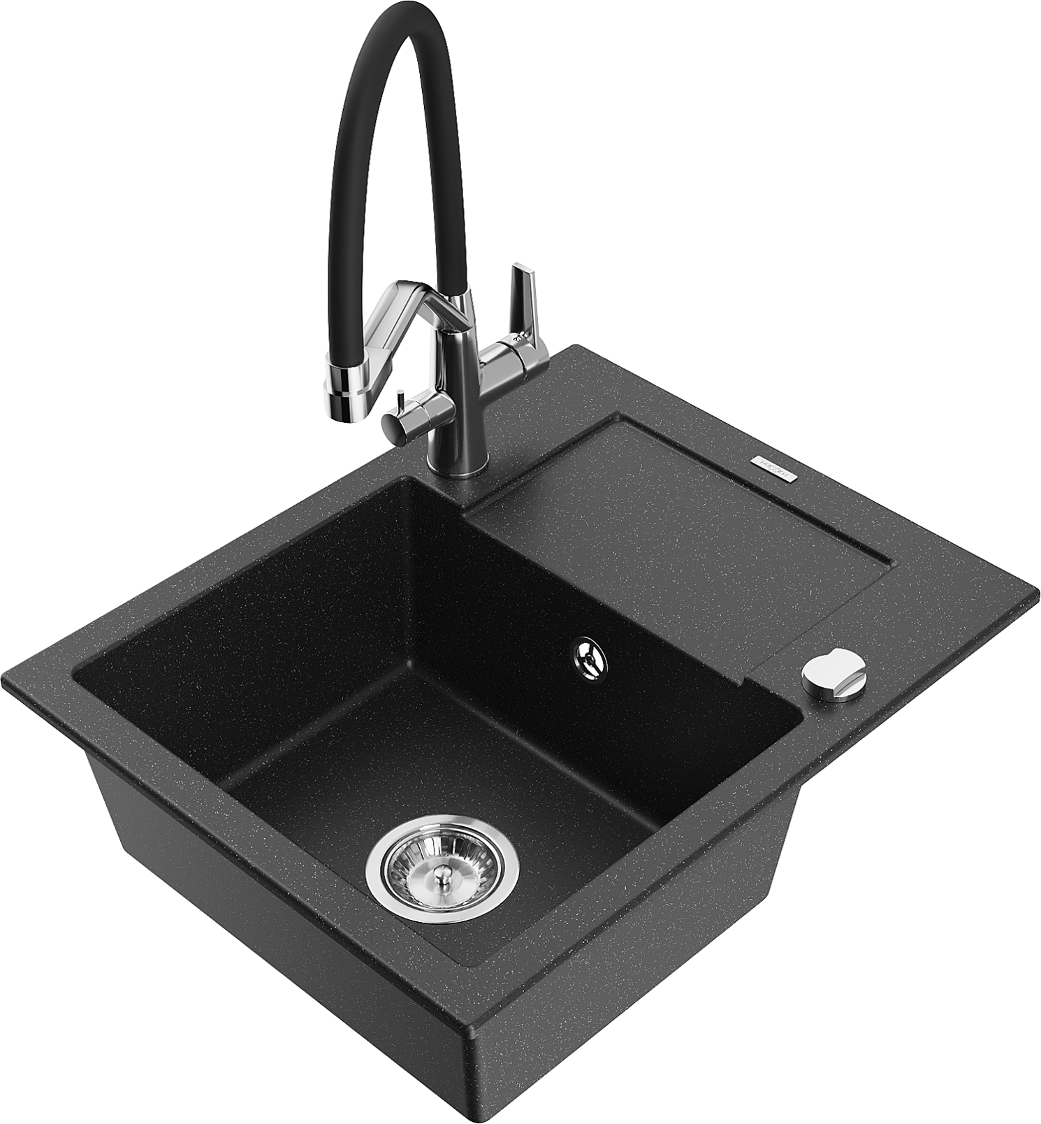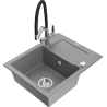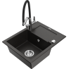 Mexen Enzo granitový drez 1-komorový s odkvapkávačom a kuchynskou batériou Duo, čierny/strieborný metalik