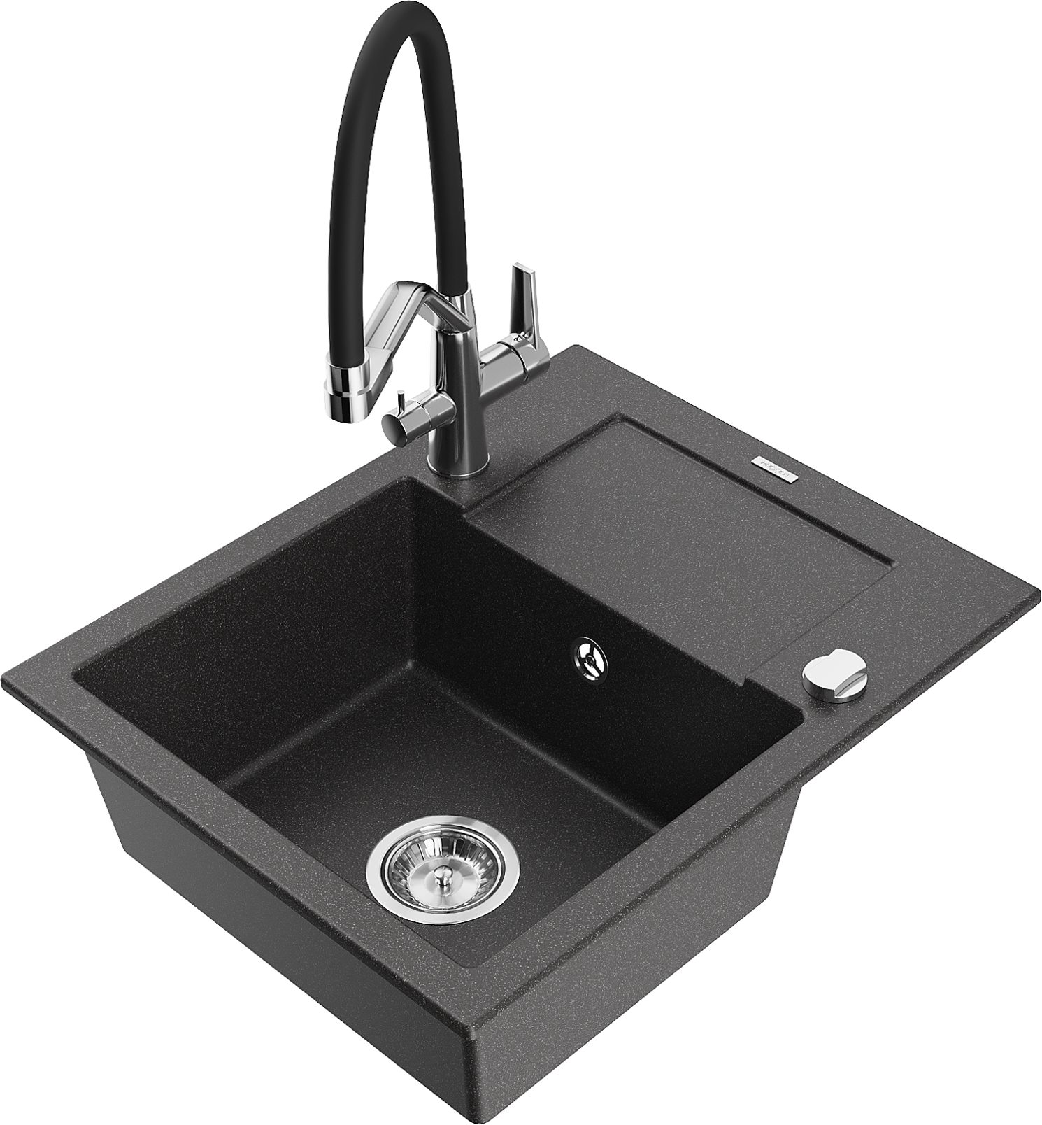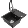 Mexen Enzo granitový drez 1-komorový s odkvapkávačom a kuchynskou batériou Duo, čierny s bodkami - 6506-76-671701-07