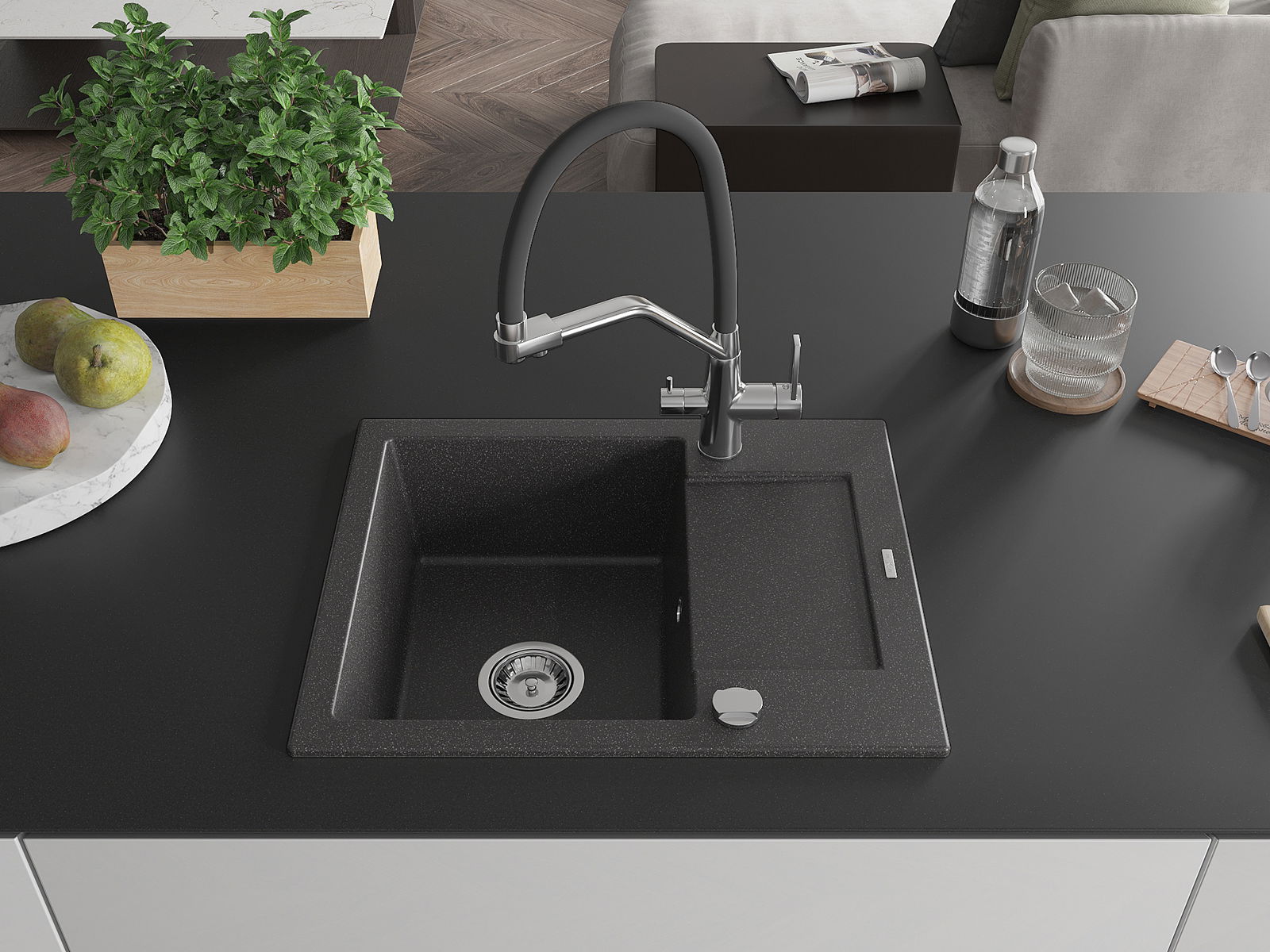 Povrch umývadla je odolný voči škvrnám a sfarbeniu, vďaka čomu sa ľahko čistí a zachováva si svoju farbu po dlhú dobu. Estetický a prakticky dopĺňajúci každú kuchyňu.