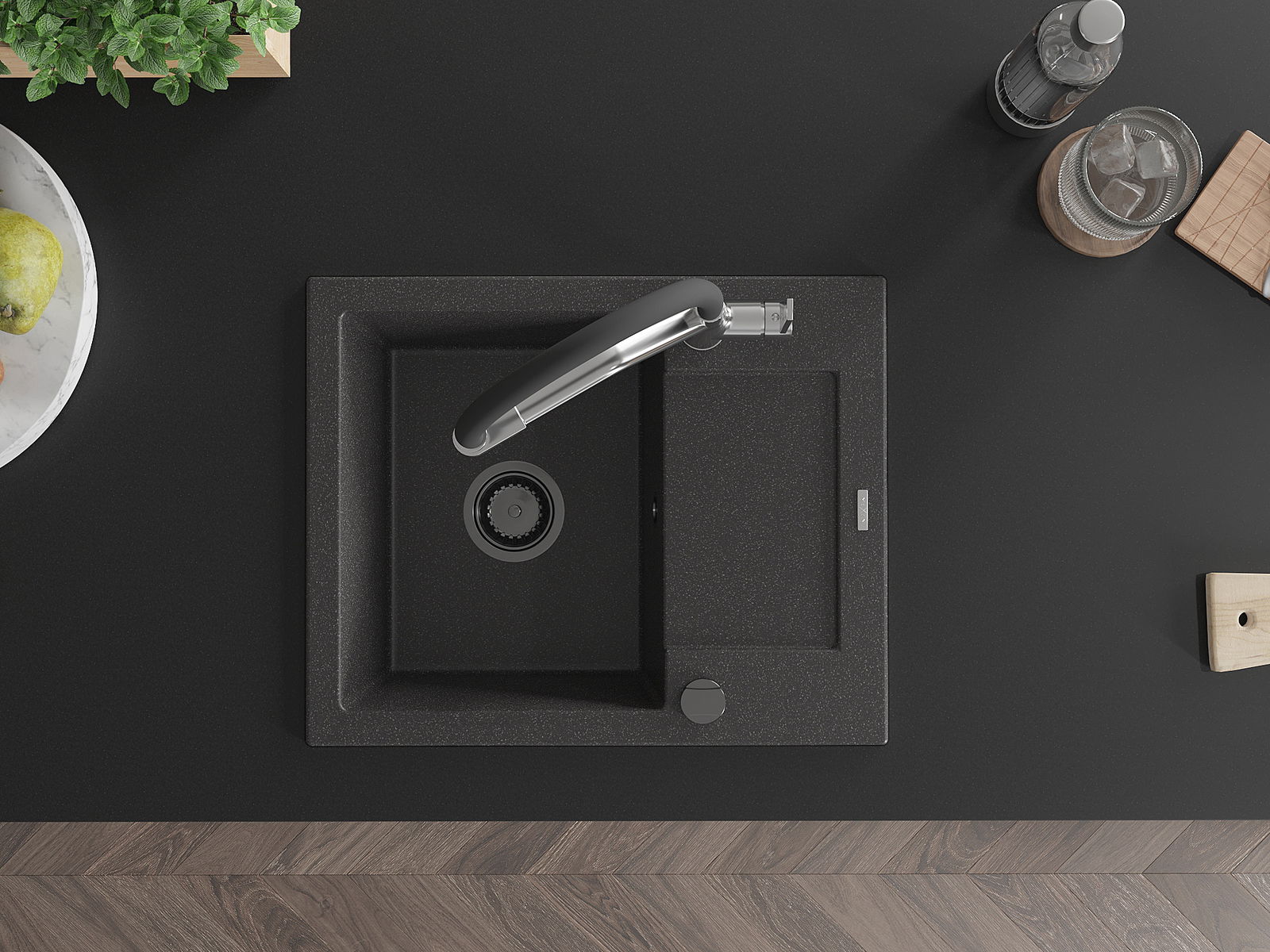 Povrch umývadla je odolný voči škvrnám a sfarbeniu, vďaka čomu sa ľahko čistí a zachováva si svoju farbu po dlhú dobu. Estetický a prakticky dopĺňajúci každú kuchyňu.