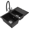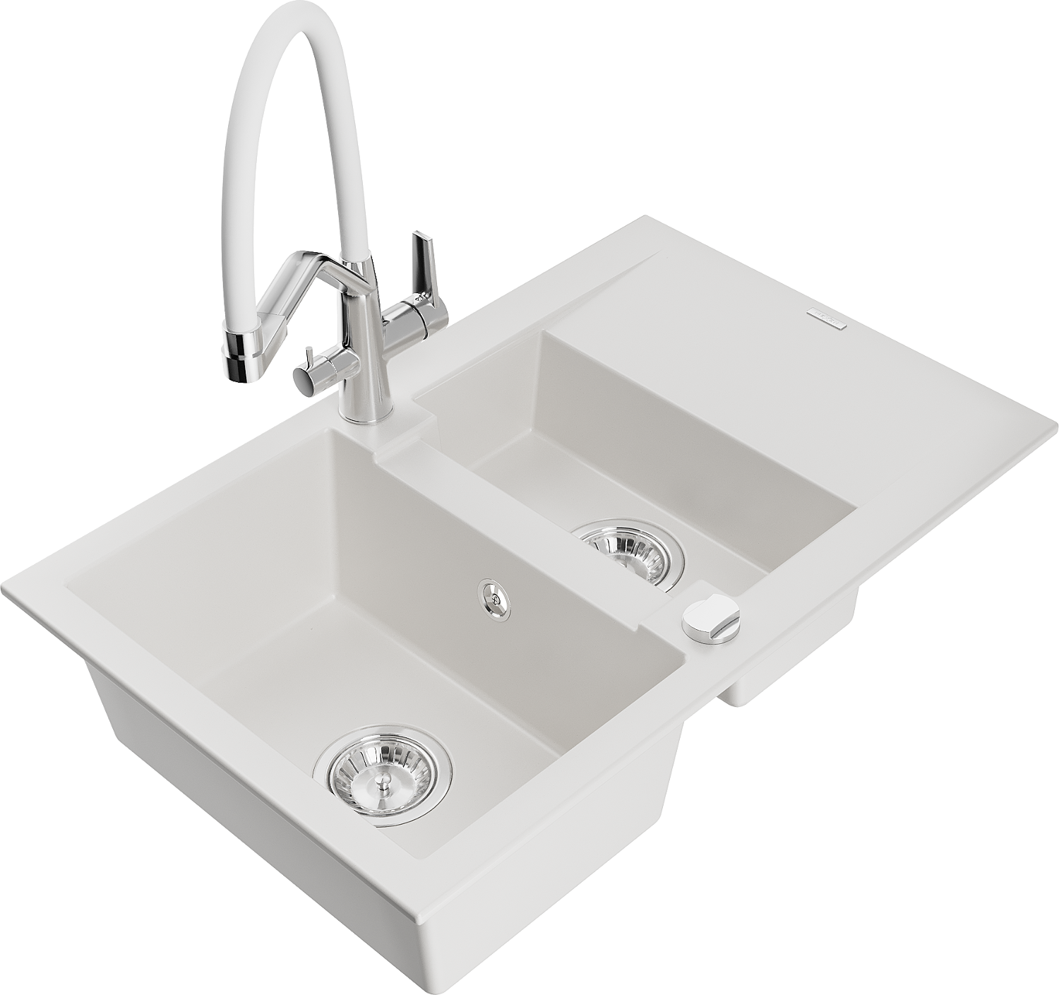 Mexen Gaspar žulový drez 1,5-komorový s odkvapkávačom a kuchynskou batériou Duo, biely - 6507-20-671701-02