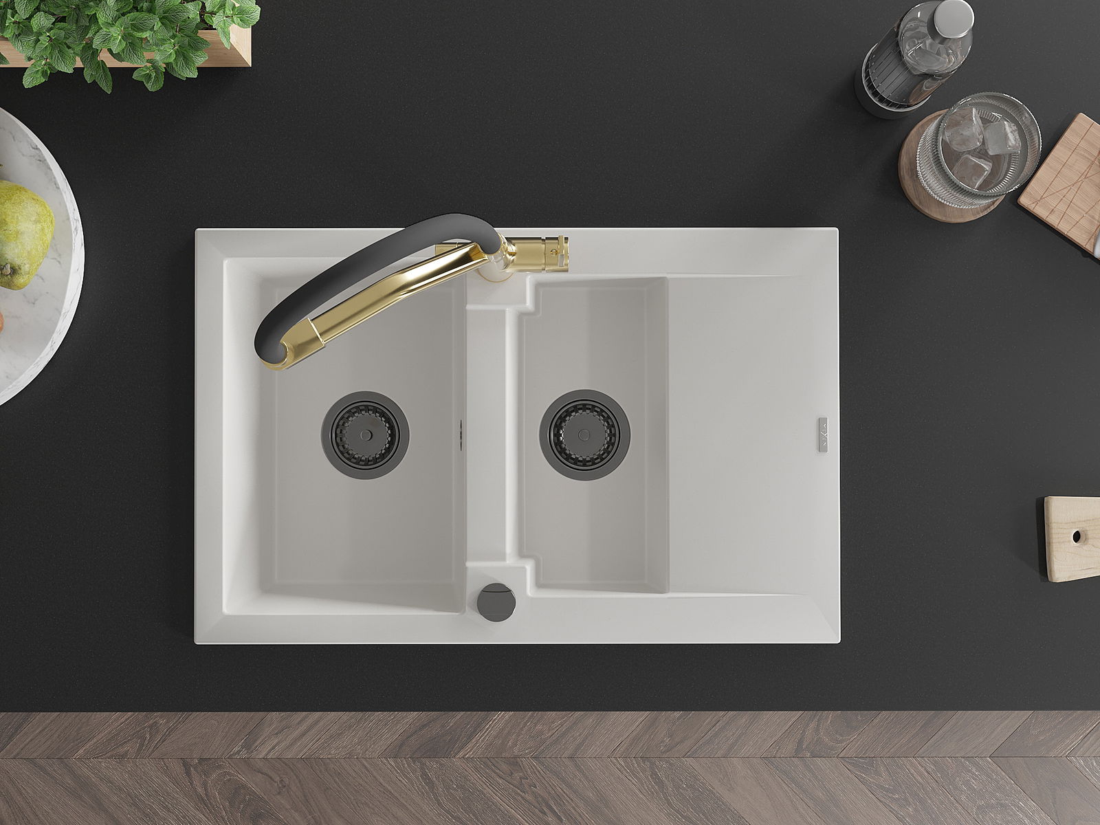 Povrch umývadla je odolný voči škvrnám a sfarbeniu, vďaka čomu sa ľahko čistí a zachováva si svoju farbu po dlhú dobu. Estetický a prakticky dopĺňajúci každú kuchyňu.