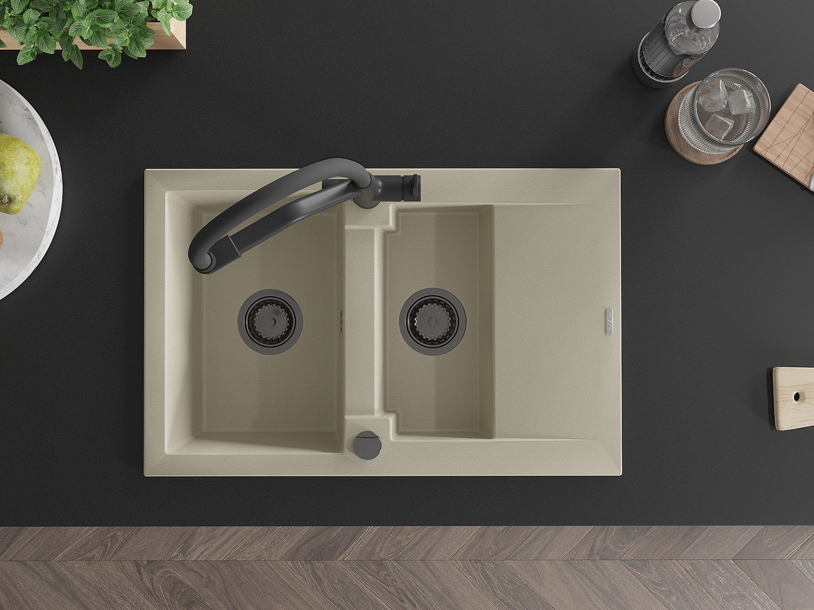 Mexen Gaspar granitový drez 1,5-komorový s odkvapkávačom a kuchynskou batériou Duo, béžový - 6507-69-671701-70-B