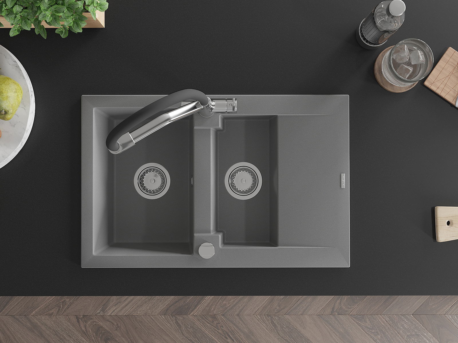 Povrch umývadla je odolný voči škvrnám a sfarbeniu, vďaka čomu sa ľahko čistí a zachováva si svoju farbu po dlhú dobu. Estetický a prakticky dopĺňajúci každú kuchyňu.