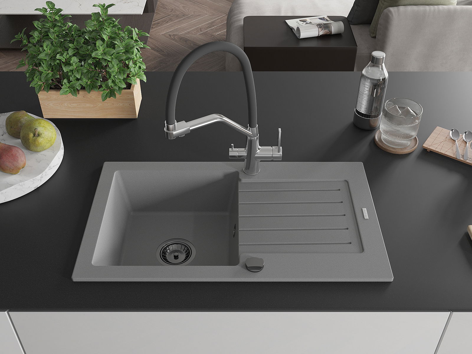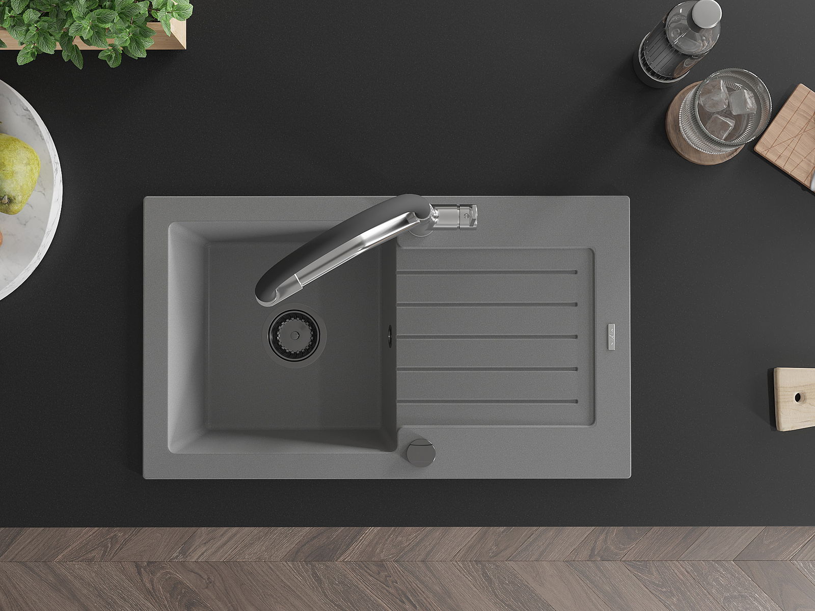 Povrch umývadla je odolný voči škvrnám a sfarbeniu, vďaka čomu sa ľahko čistí a zachováva si svoju farbu po dlhú dobu. Estetický a prakticky dopĺňajúci každú kuchyňu.