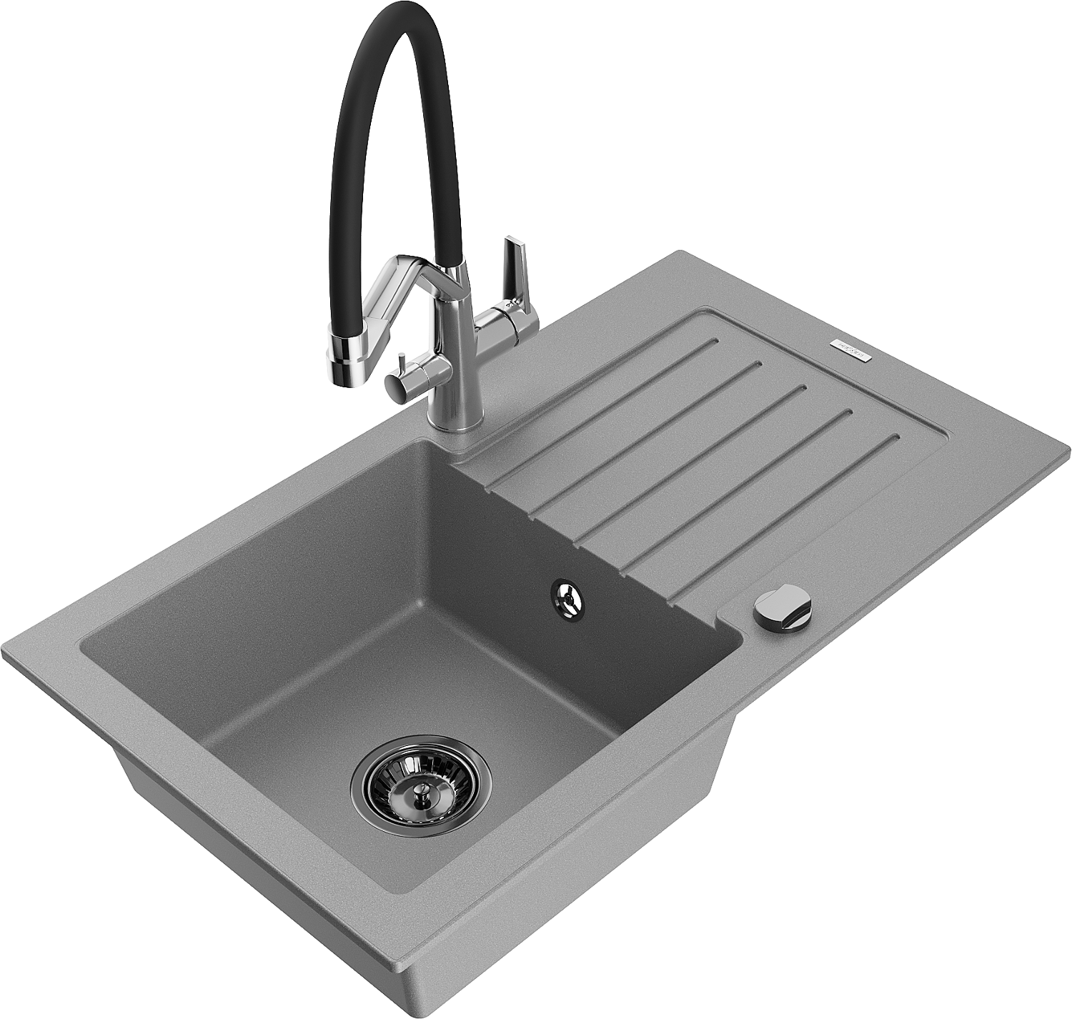 Mexen Pablo granitový drez 1-komorový s odkvapkávačom a kuchynskou batériou Duo, šedý - 6510-71-671701-07-B