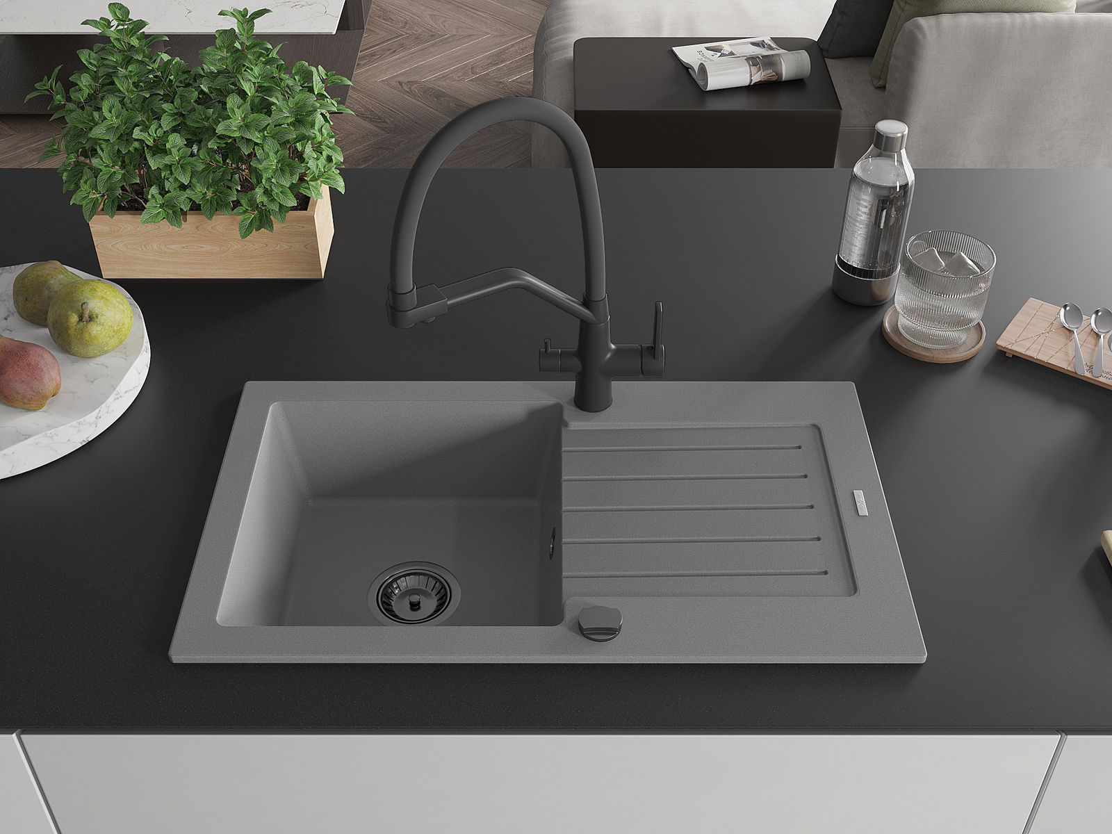 Drez bol vyrobený z vysoko kvalitného granitu. Predstavuje elegantný a predovšetkým praktický doplnok každej kuchyne, nezávisle od jej štýlu. Vysoká kvalita a trvácnosť granitu zaručujú mnohoročné používanie.