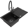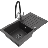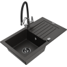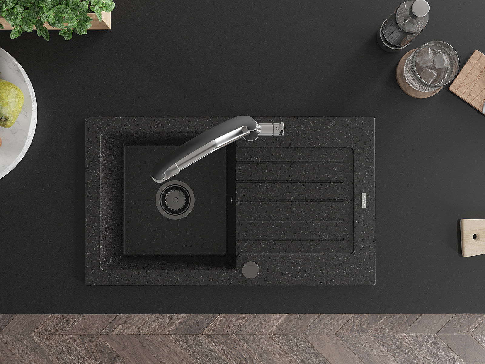 Mexen Pablo žulový drez s jednou komorou a odkvapkávačom a kuchynskou batériou Duo, čierny/strieborný metalický