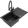 Mexen Pablo jednokomorový granitový drez s odkvapkávačom a kuchynskou batériou Duo, čierny/strieborný metalizovaný - 6510-73-67?