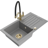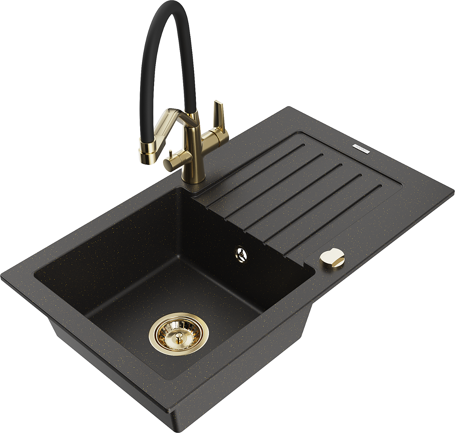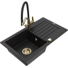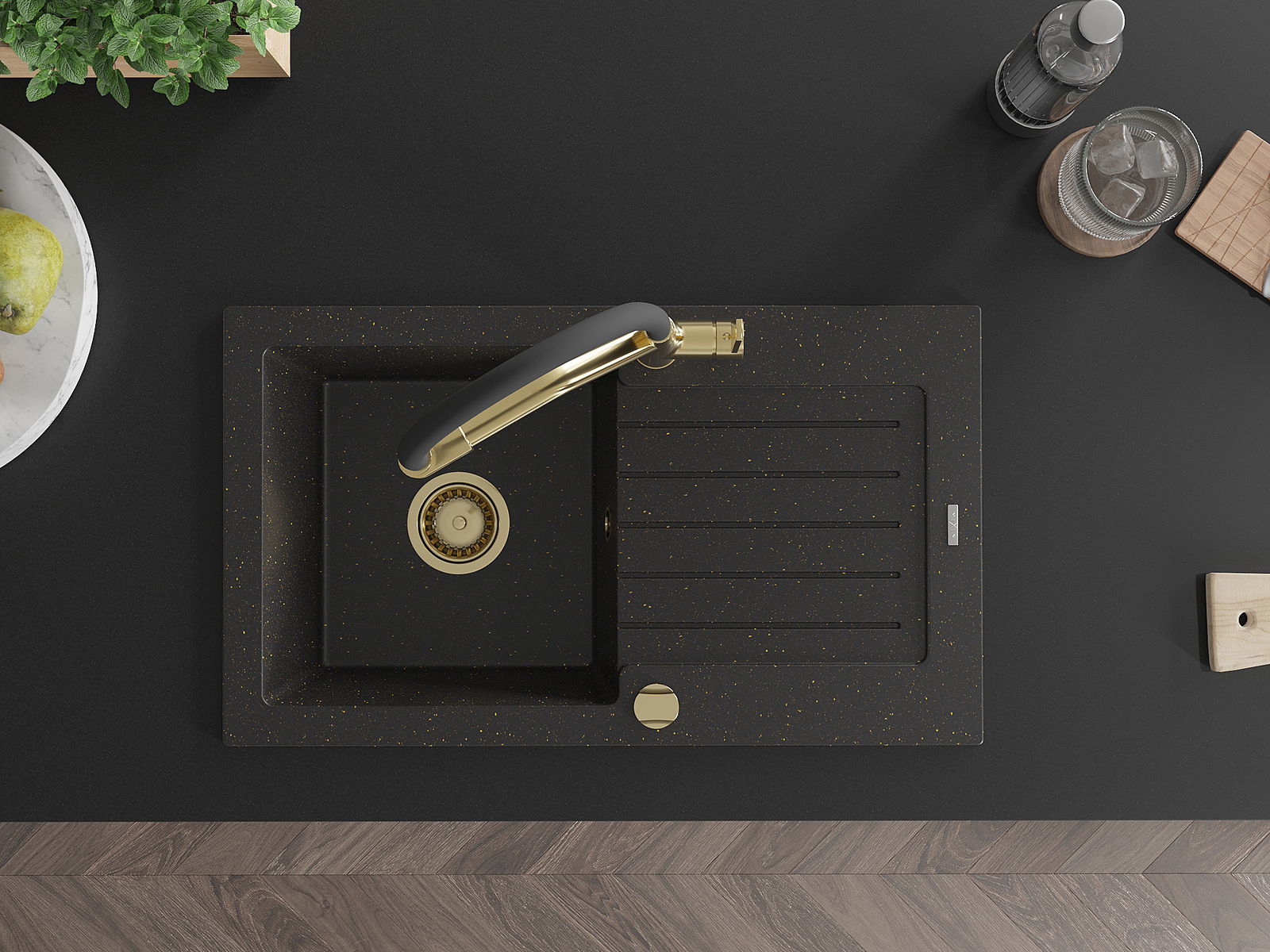 Mexen Pablo granitový jednodrez s odkvapkávačom a kuchynskou batériou Duo, čierna/zlatá metalíza - 6510-75-671701-57-G