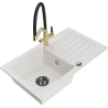 Povrch kuchynského drezu je odolný voči škvrnám a zafarbeniu, vďaka čomu sa ľahko udržiava a zachováva svoju farbu počas dlhého obdobia používania. Estetický a praktický doplnok pre každú kuchyňu.