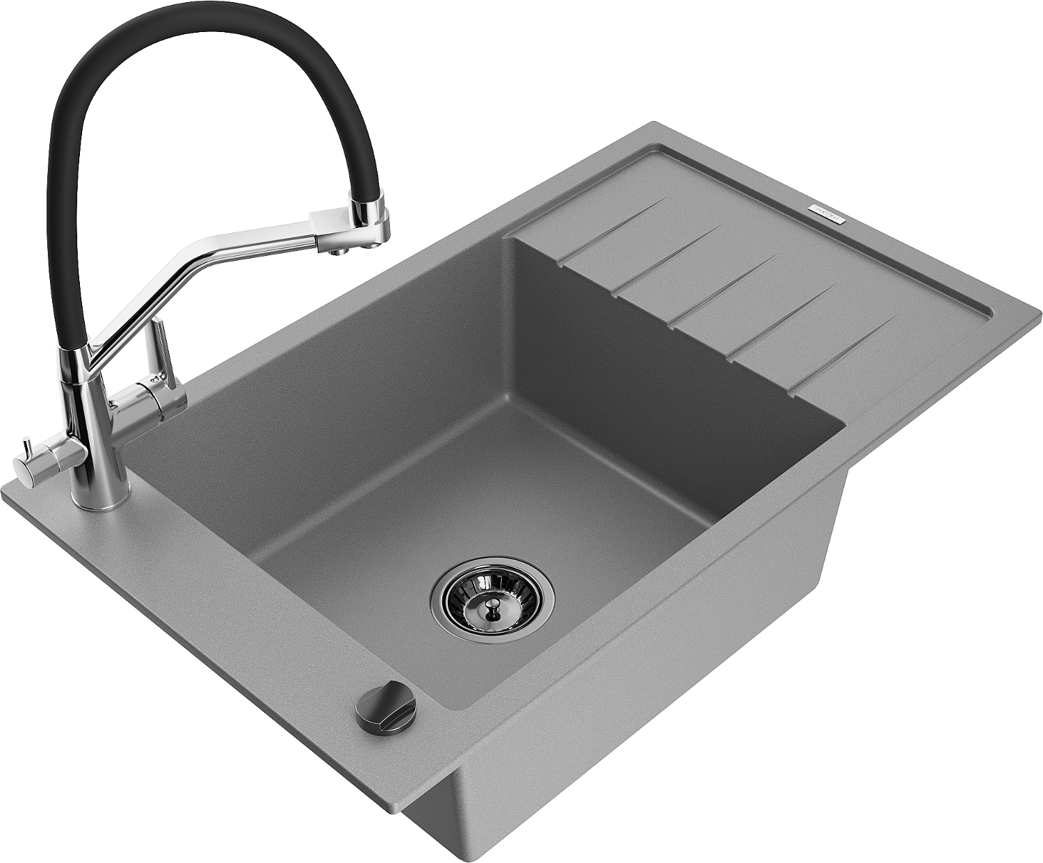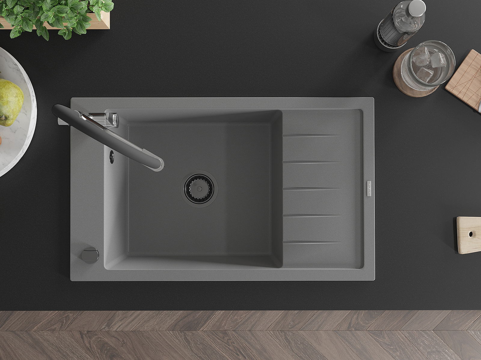 Mexen Elias žulový drez 1-komorový s odkvapkávačom a kuchynskou batériou Duo, sivá - 6511-71-671701-07-B