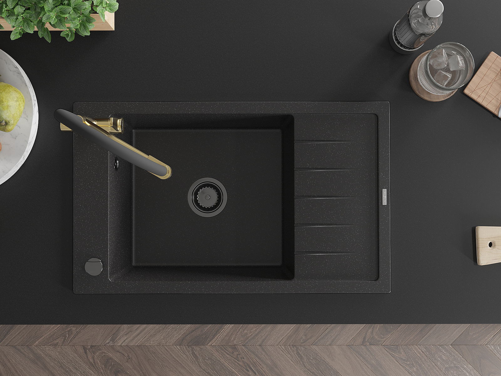 Povrch umývadla je odolný voči škvrnám a sfarbeniu, vďaka čomu sa ľahko čistí a zachováva si svoju farbu po dlhú dobu. Estetický a prakticky dopĺňajúci každú kuchyňu.