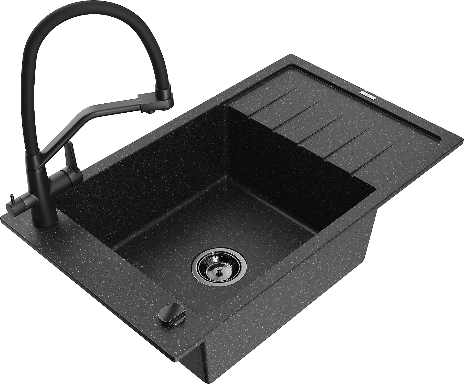 Mexen Elias kuchynský drez s odkvapkávačom a kuchynskou batériou Duo, čierny/strieborný metalik - 6511-73-671701-70-B