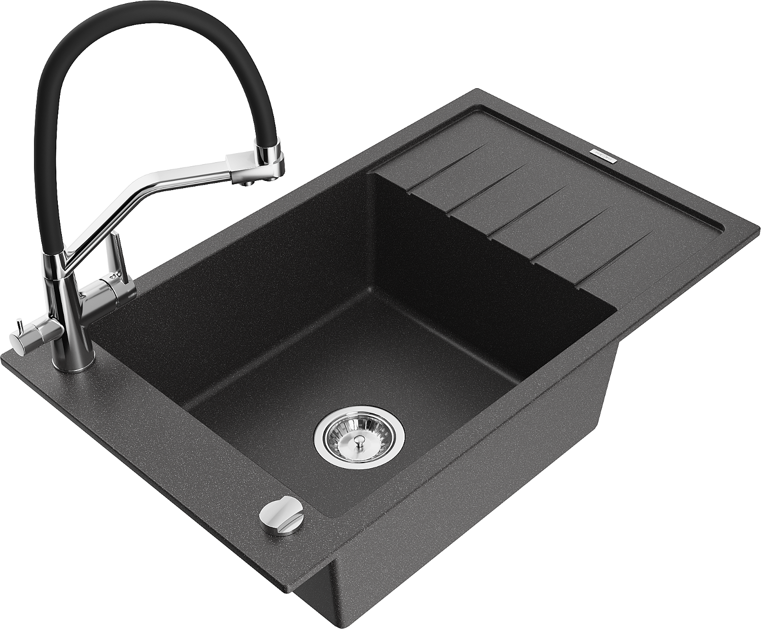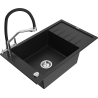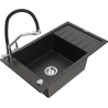 Mexen Elias jednokomorový žulový drez s odkvapkávačom a kuchynskou batériou Duo, čierno škvrnitý - 6511-76-671701-07