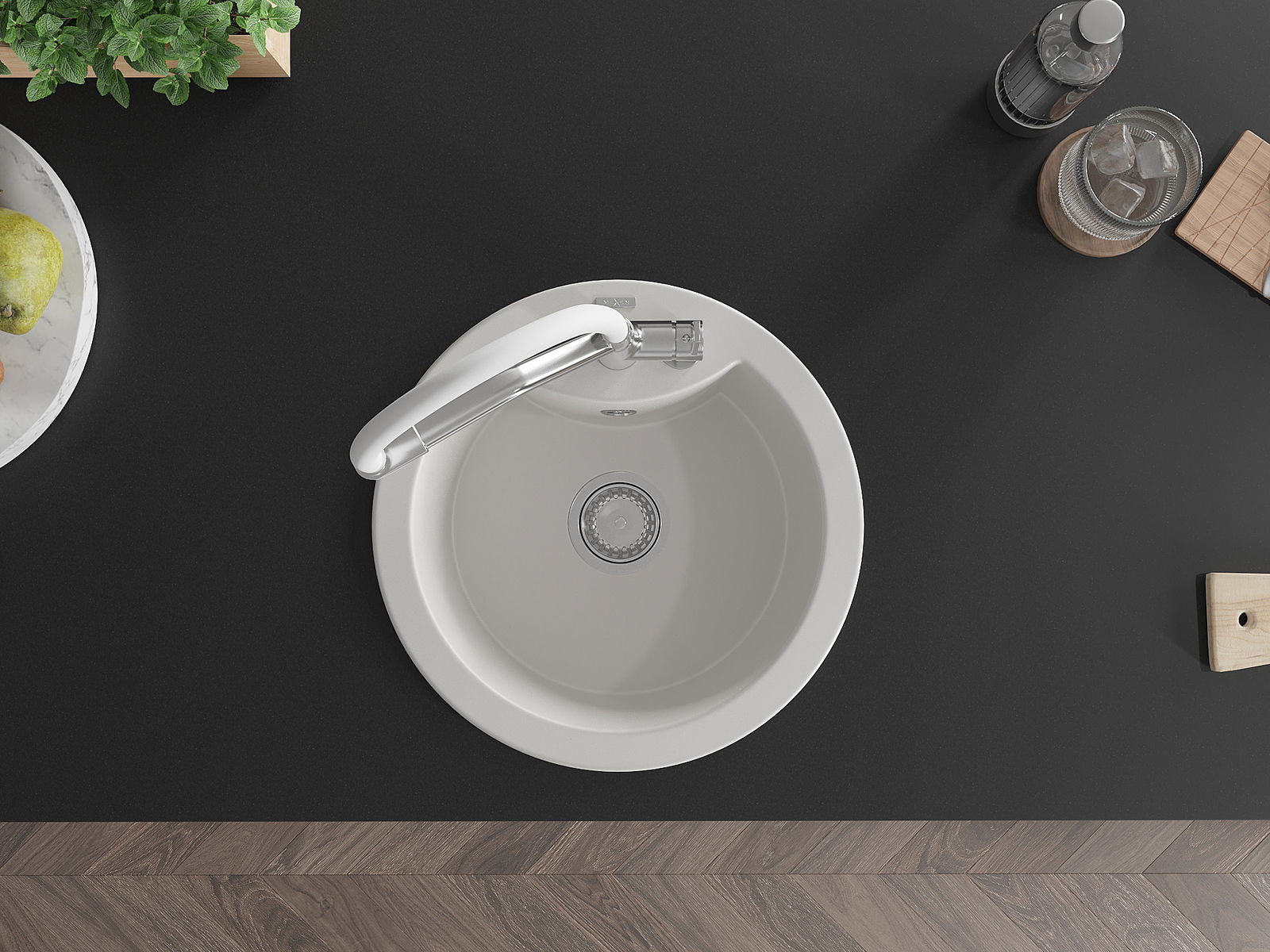 Povrch kuchynského drezu je odolný voči škvrnám a zafarbeniu, vďaka čomu sa ľahko udržiava a zachováva svoju farbu počas dlhého obdobia používania. Estetický a praktický doplnok pre každú kuchyňu.