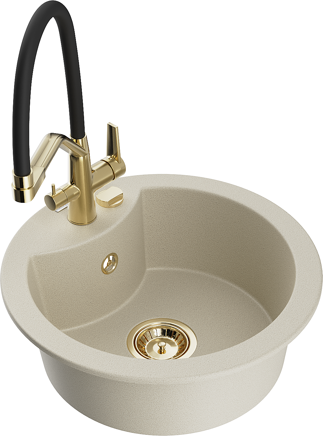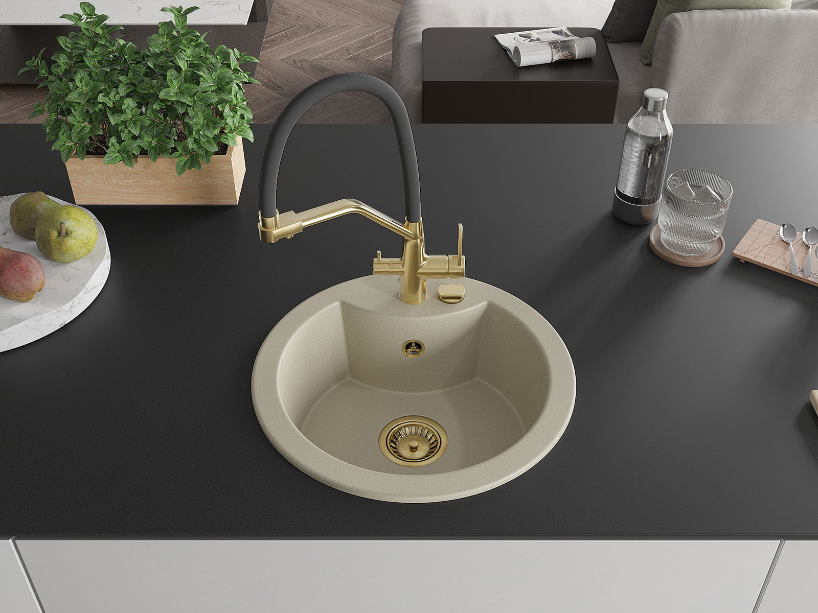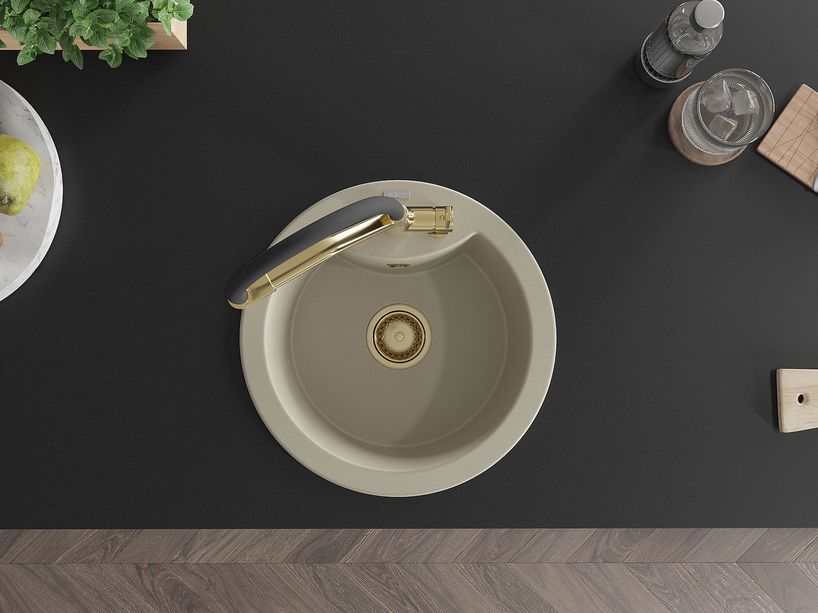 Mexen Diego granitový drez 1-komorový s kuchynskou batériou Duo, béžový - 6512-69-671701-57-G