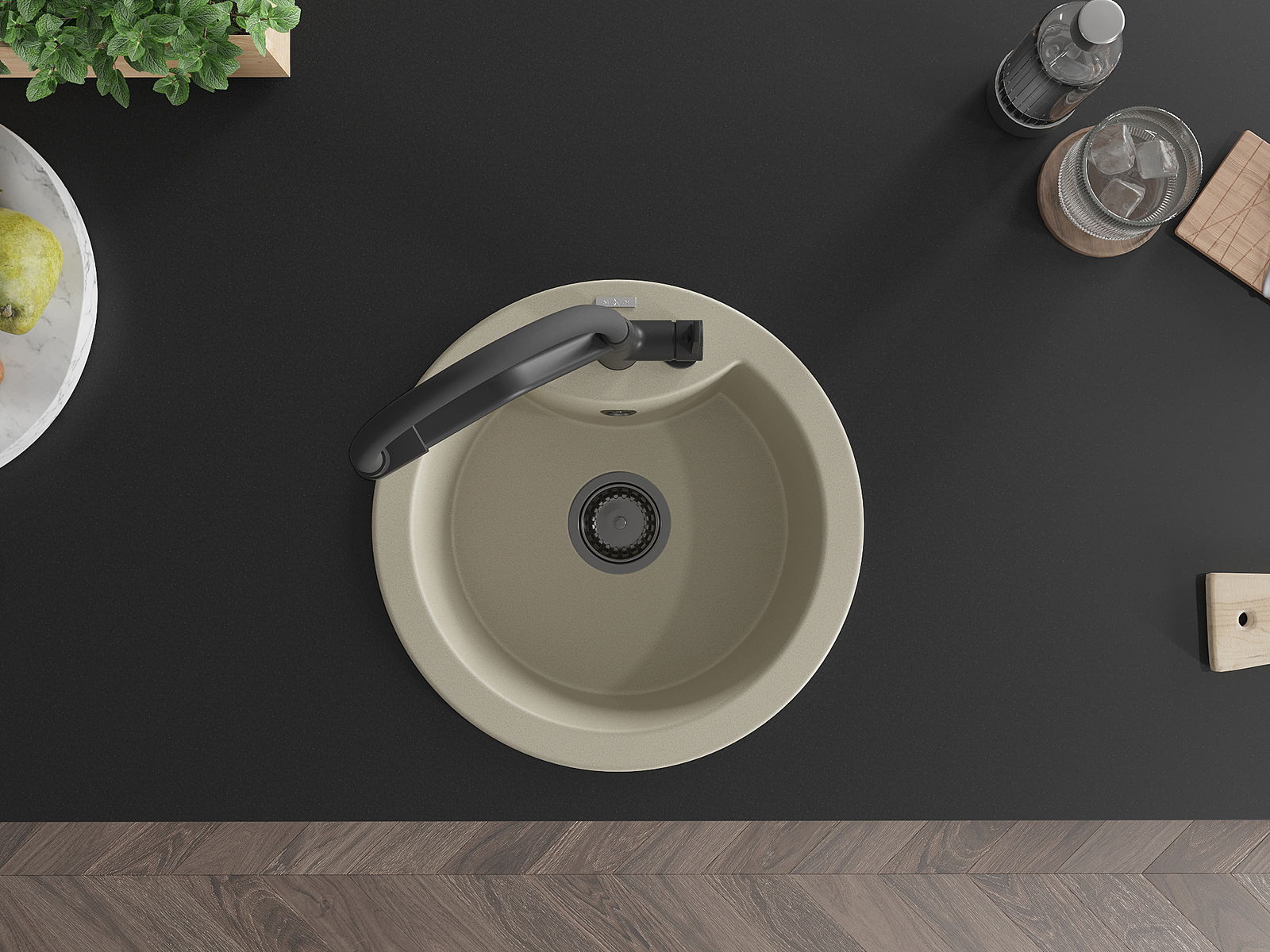 Povrch umývadla je odolný voči škvrnám a sfarbeniu, vďaka čomu sa ľahko čistí a zachováva si svoju farbu po dlhú dobu. Estetický a prakticky dopĺňajúci každú kuchyňu.