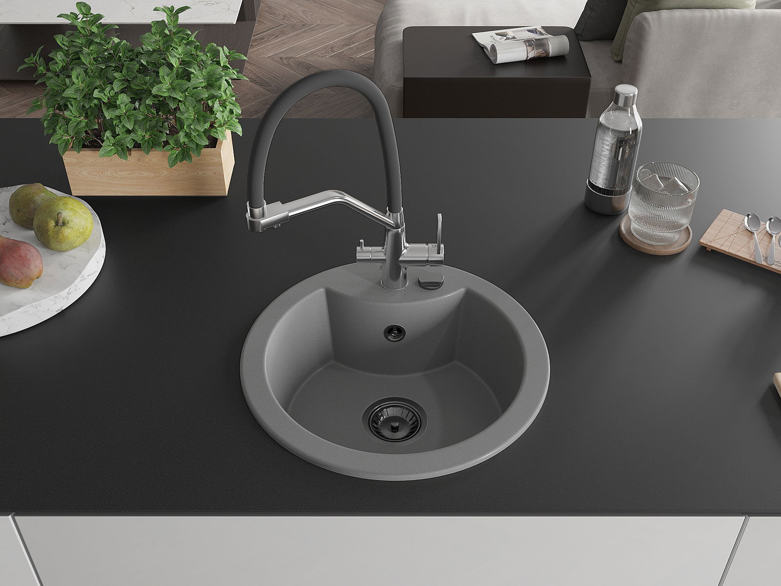 Povrch umývadla je odolný voči škvrnám a sfarbeniu, vďaka čomu sa ľahko čistí a zachováva si svoju farbu po dlhú dobu. Estetický a prakticky dopĺňajúci každú kuchyňu.