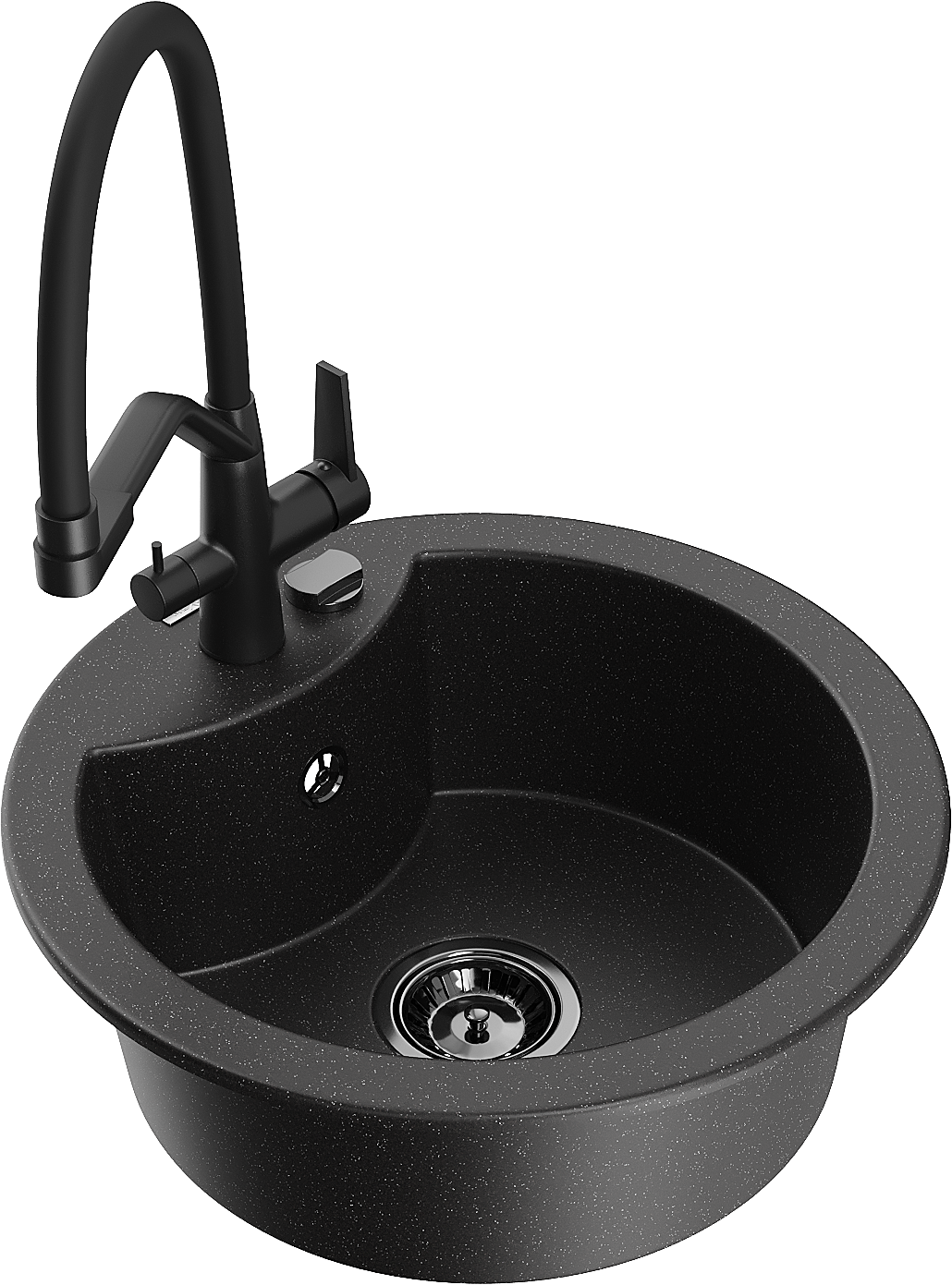 Mexen Diego granitový drez s 1 komorou a kuchynskou batériou Duo, čierny/strieborný metalik - 6512-73-671701-70-B