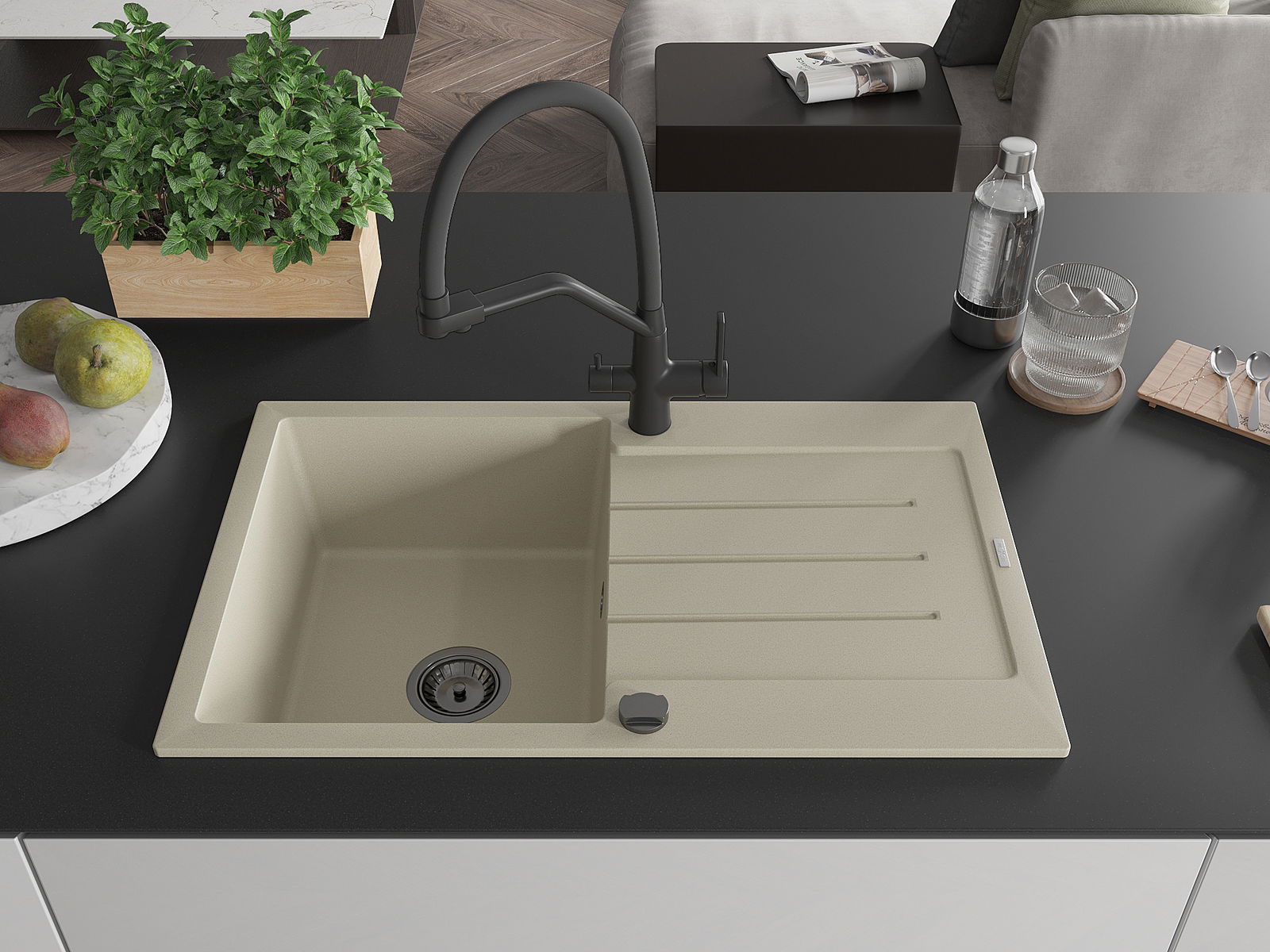 Drez bol vyrobený z vysoko kvalitného granitu. Predstavuje elegantný a predovšetkým praktický doplnok každej kuchyne, nezávisle od jej štýlu. Vysoká kvalita a trvácnosť granitu zaručujú mnohoročné používanie.