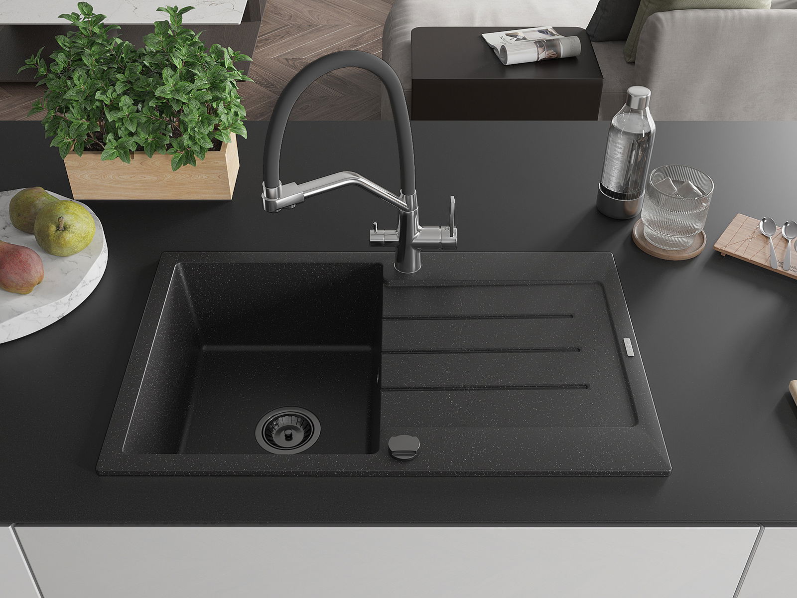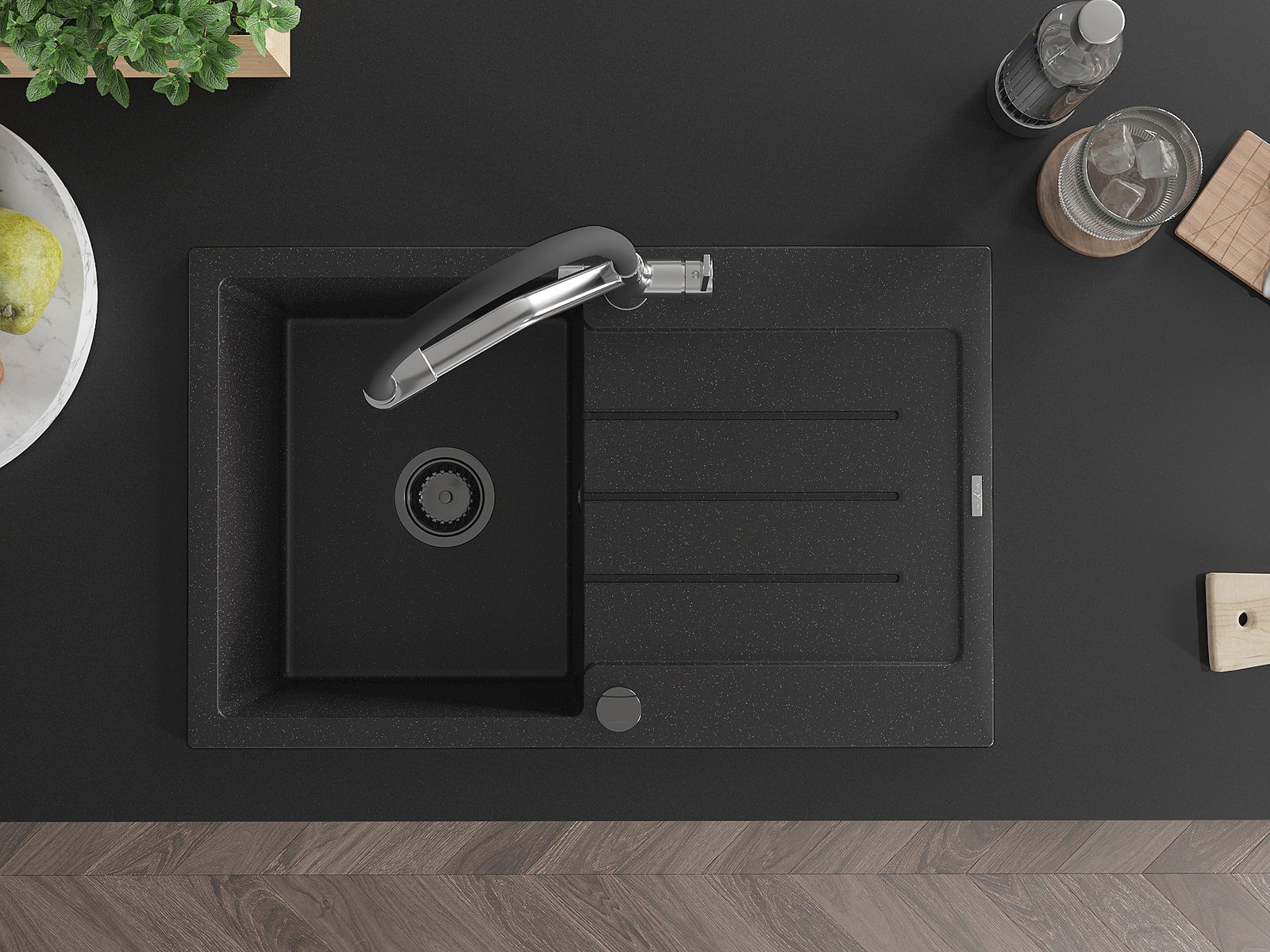 Drez bol vyrobený z vysoko kvalitného granitu. Predstavuje elegantné, ale predovšetkým praktické doplnenie každej kuchyne, nezávisle od jej štýlu. Vysoká kvalita a trvácnosť granitu zaisťujú dlhodobé používanie.