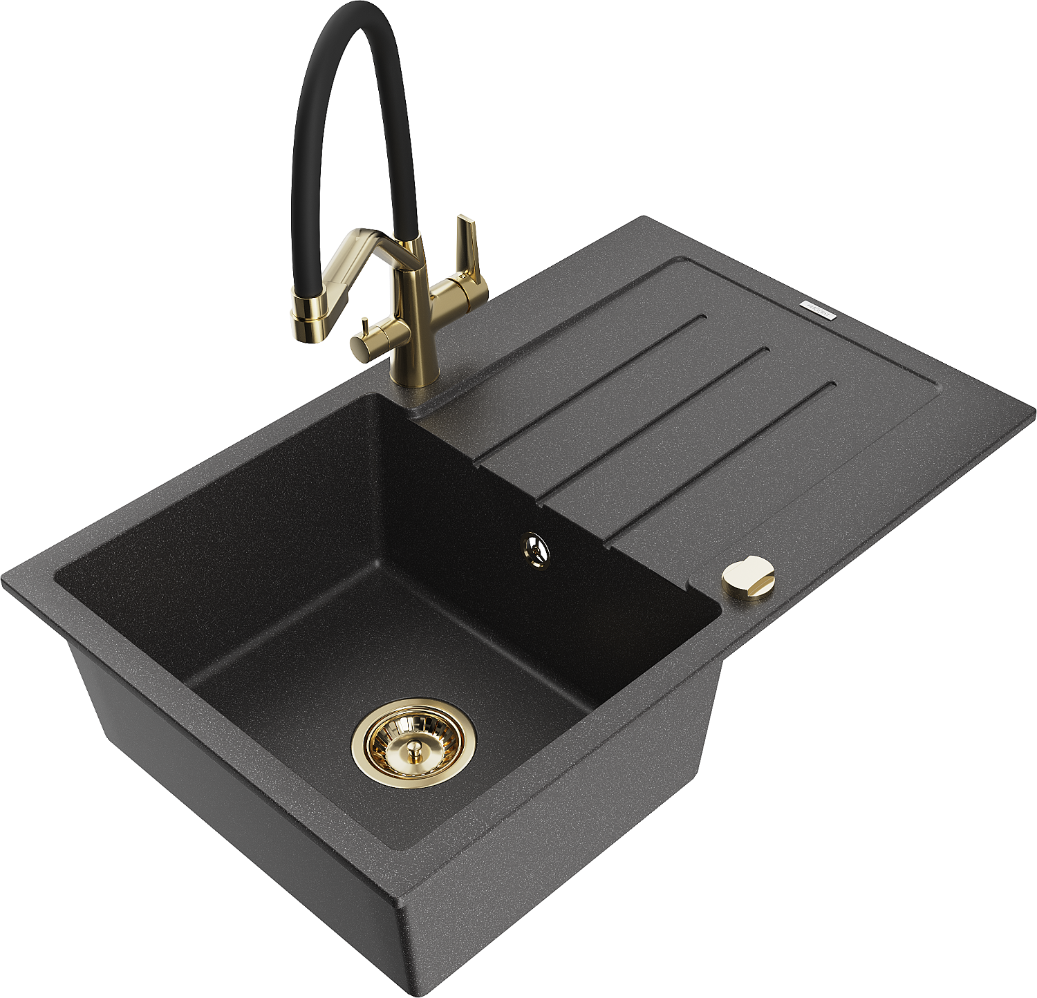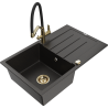 Mexen Bruno granitový drez 1-komorový s odkvapkávačom a kuchynskou batériou Duo, čierny s fŕkaním - 6513-76-671701-57-G