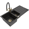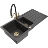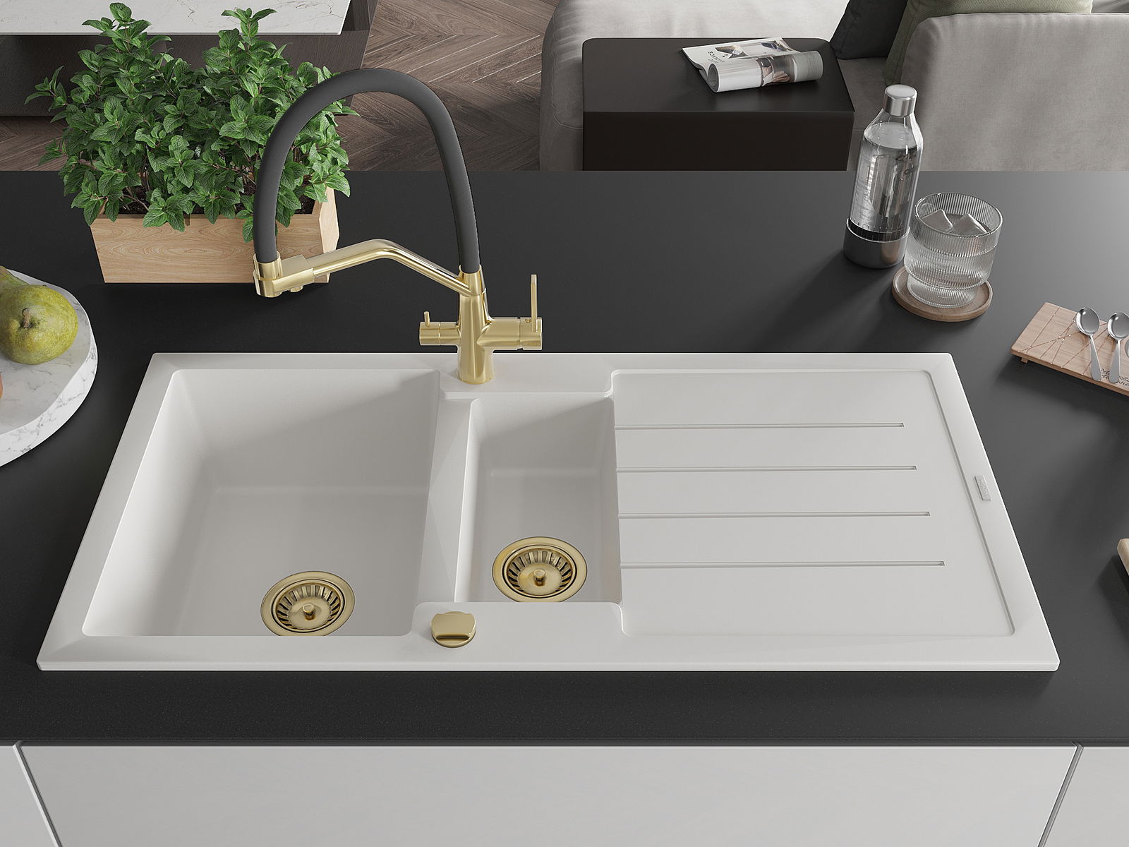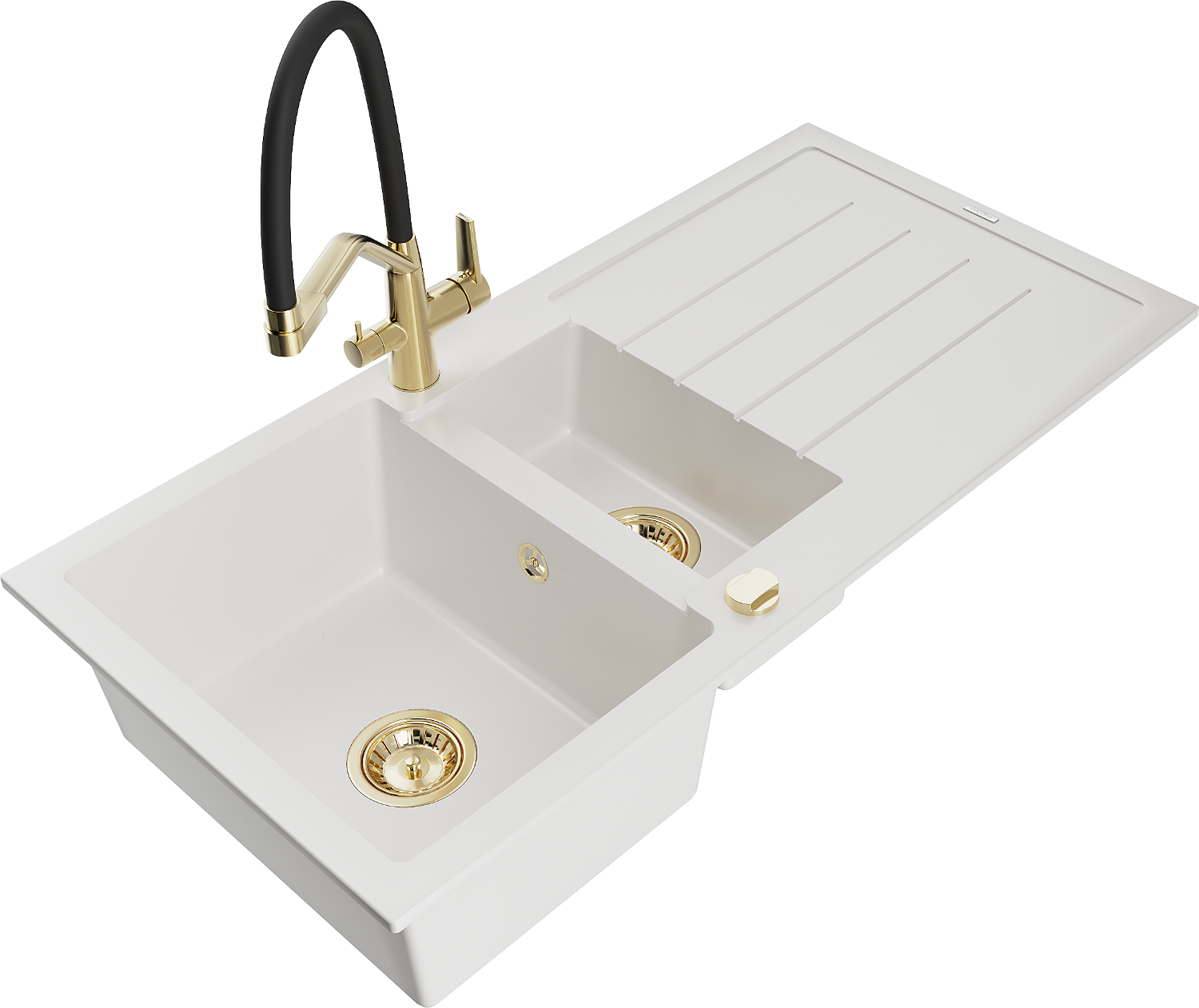 Mexen Andres žulový drez 1,5-komorový s odkvapkávačom a kuchynskou batériou Duo, biely - 6515-20-671701-57-G