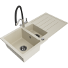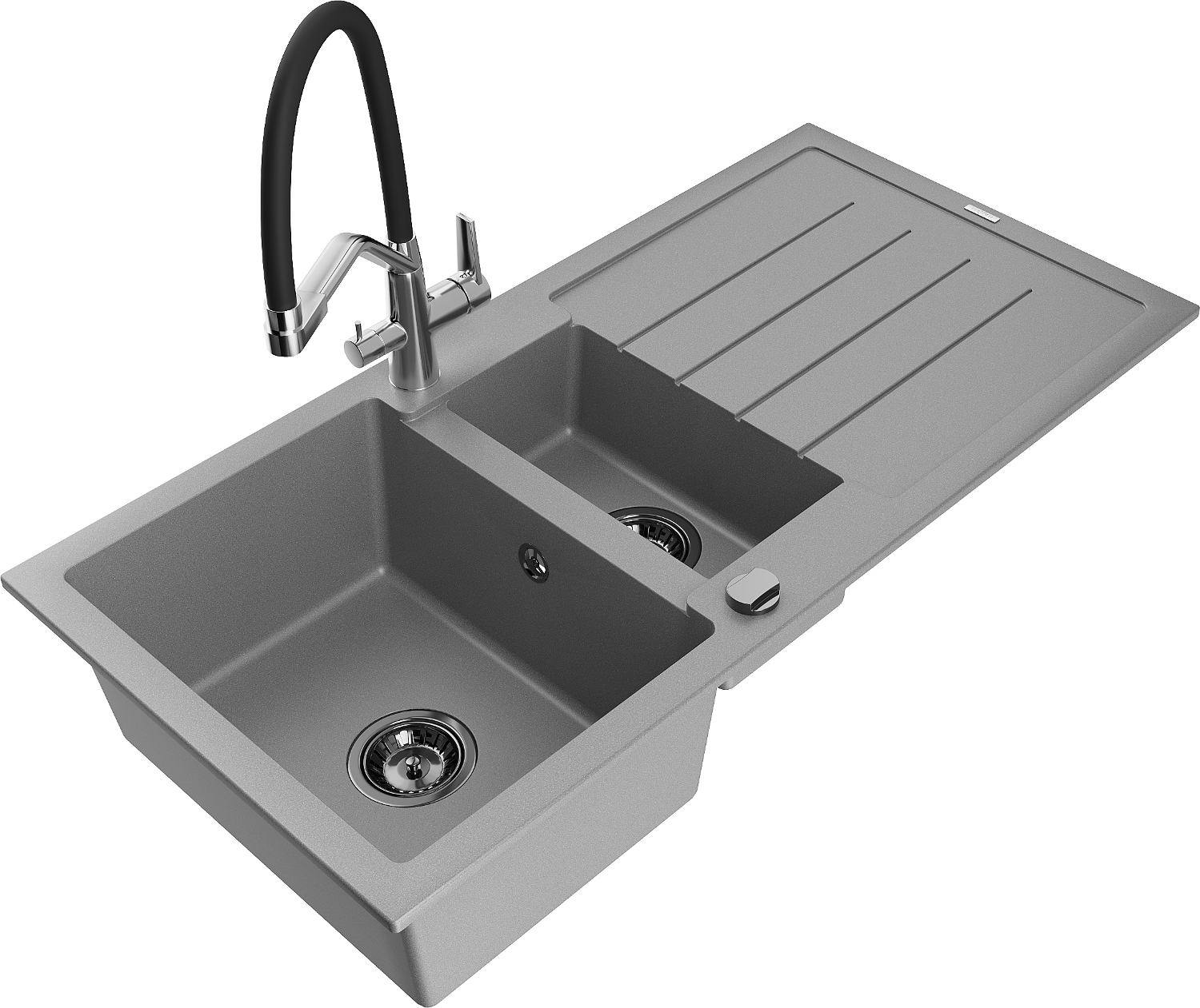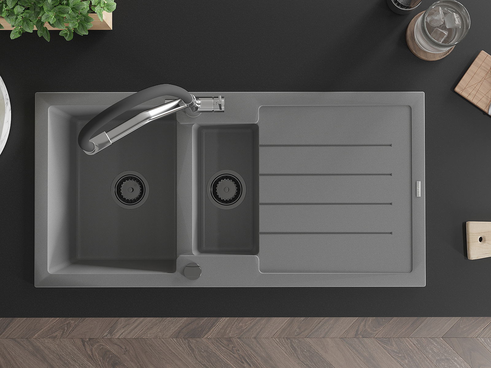 Mexen Andres granitový drez 1,5-komorový s odkvapkávačom a kuchynskou batériou Duo, sivý - 6515-71-671701-07-B