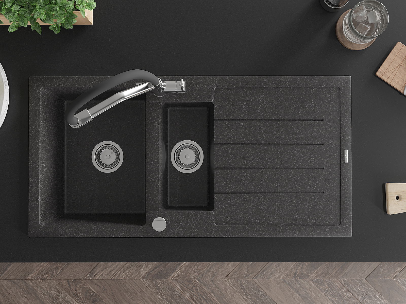 Povrch umývadla je odolný voči škvrnám a sfarbeniu, vďaka čomu sa ľahko čistí a zachováva si svoju farbu po dlhú dobu. Estetický a prakticky dopĺňajúci každú kuchyňu.