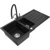 Mexen Andres granitový drez 1,5-komorový s odkvapkávačom a kuchynskou batériou Duo, čierny bodkovaný - 6515-76-671701-07