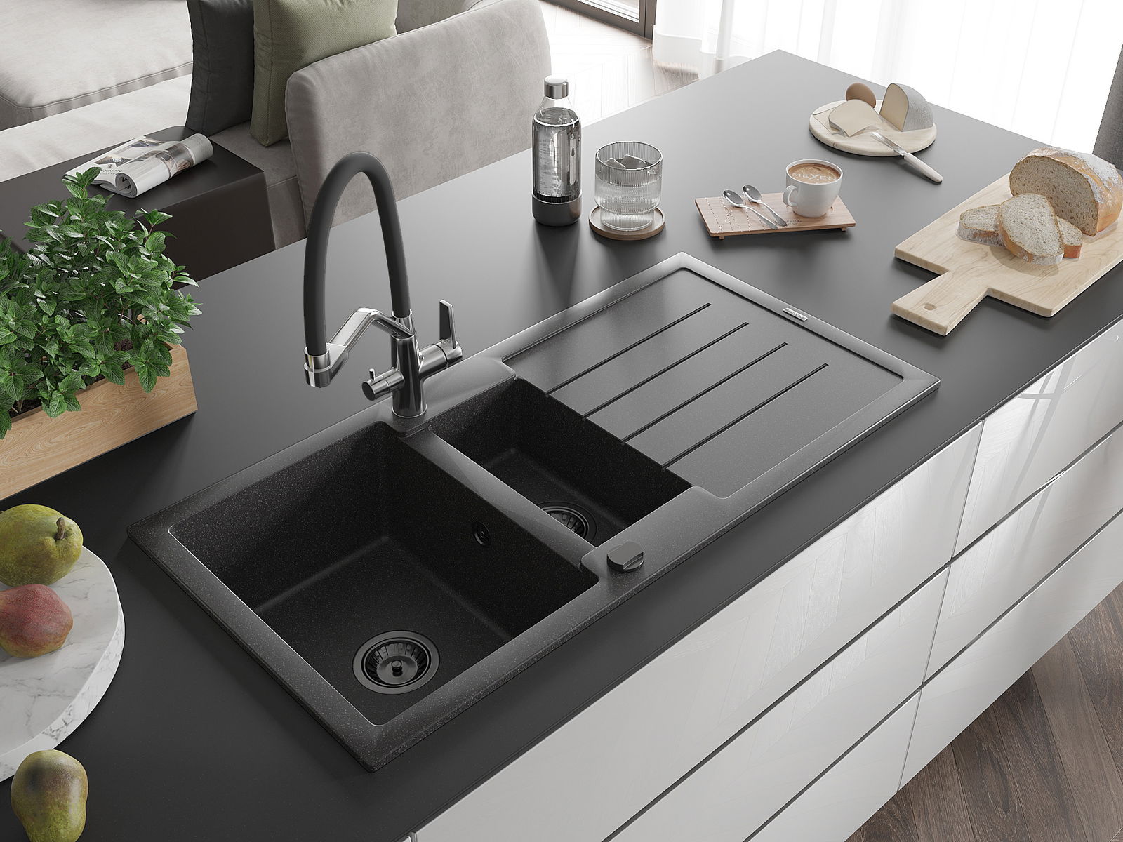 Povrch umývadla je odolný voči škvrnám a sfarbeniu, vďaka čomu sa ľahko čistí a zachováva si svoju farbu po dlhú dobu. Estetický a prakticky dopĺňajúci každú kuchyňu.